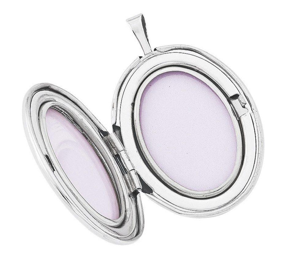 • Sterling Silver 26mm Enameled Flower and Scroll Oval Locket