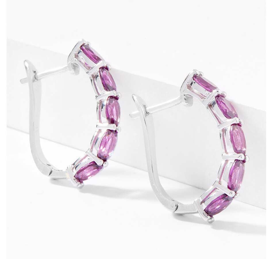 Sterling Silver 6 mm x 4 mm Oval Grape Garnet Hoop Earrings