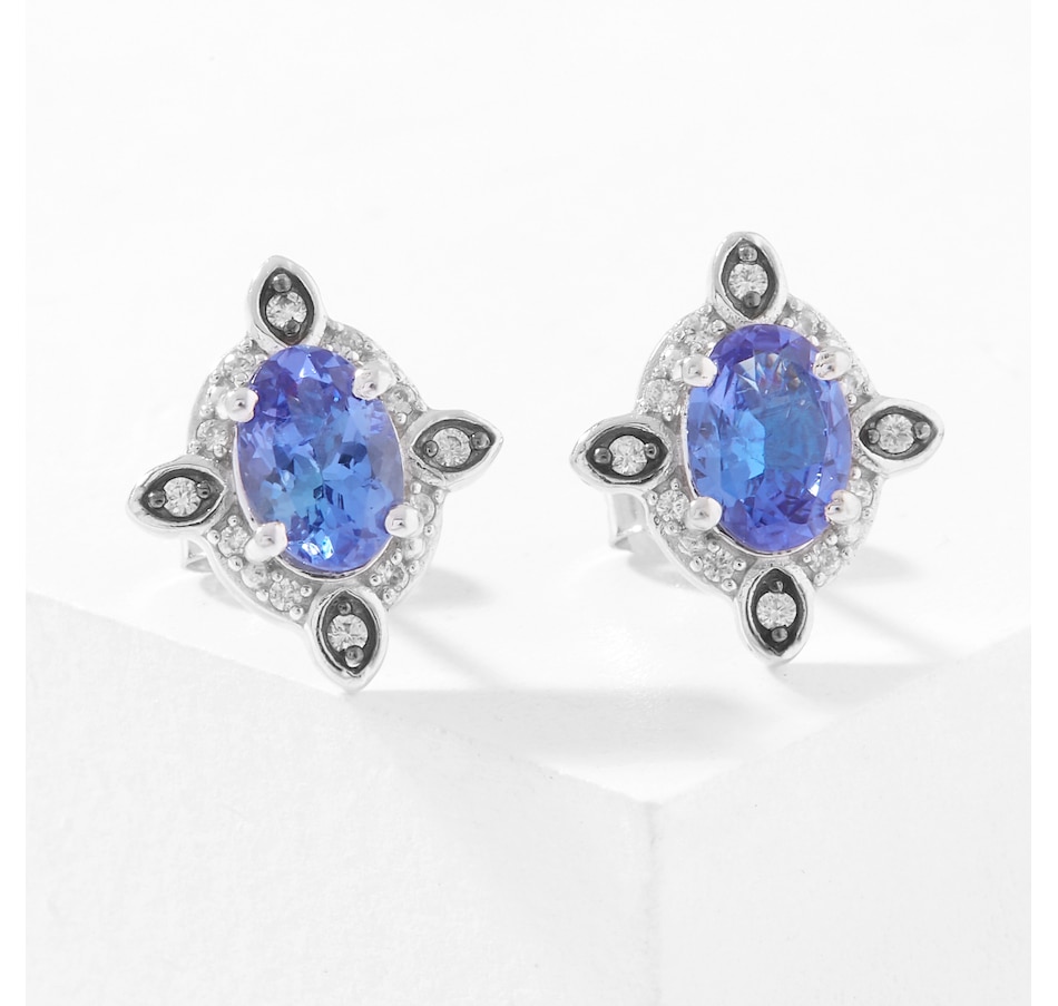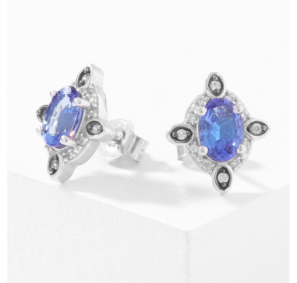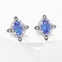 Sterling Silver 7 mm x 5 mm Oval Tanzanite and White Zircon Earrings