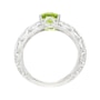• (1) 6 mm x 4 mm oval, semi-bezel-set and faceted peridot (1.35 av. ctw)