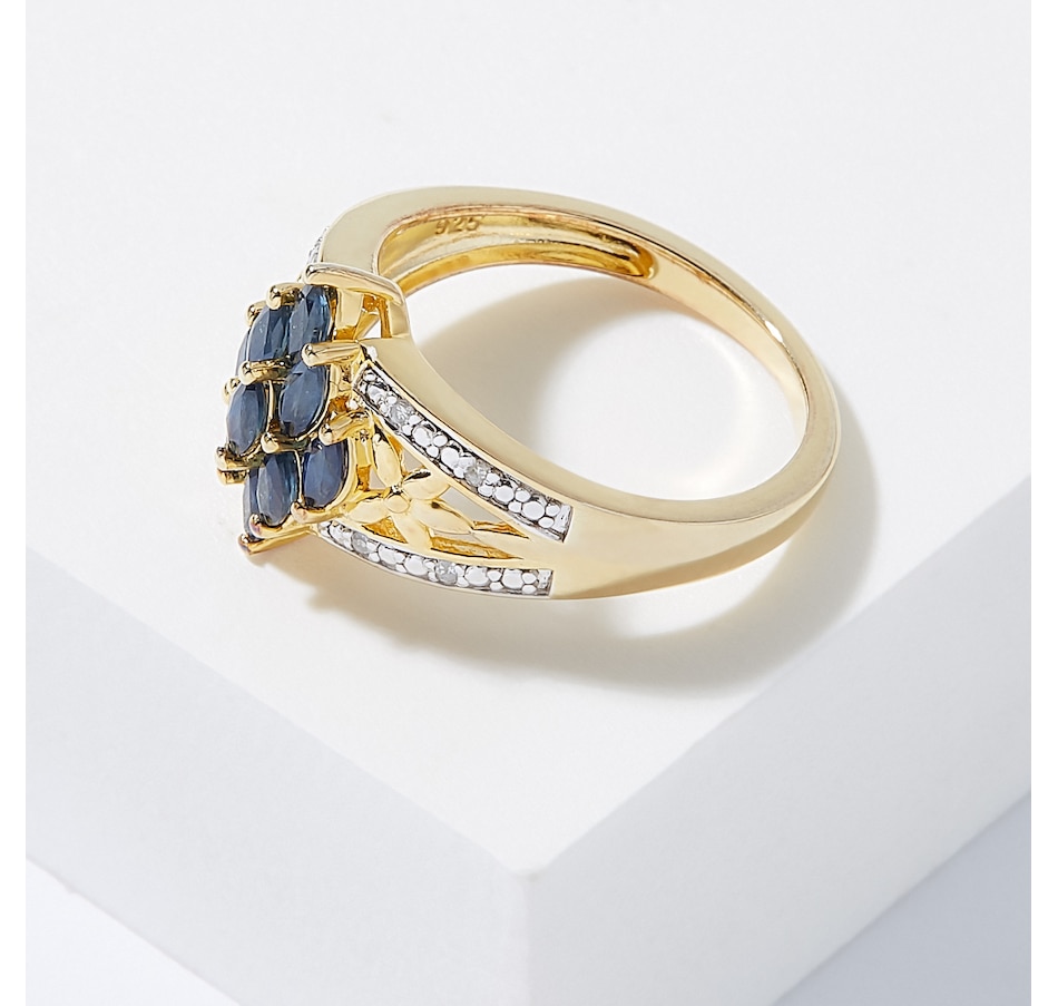 Sterling Silver And 14K Yellow Gold Precious Gemstone And Diamond Ring