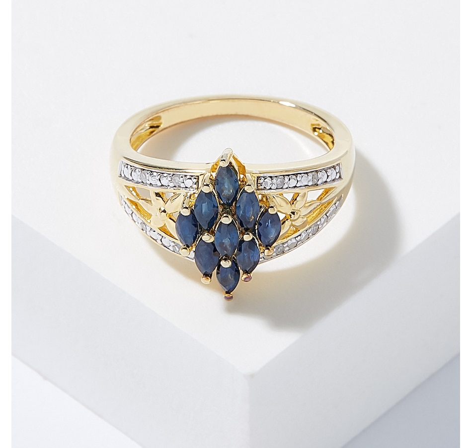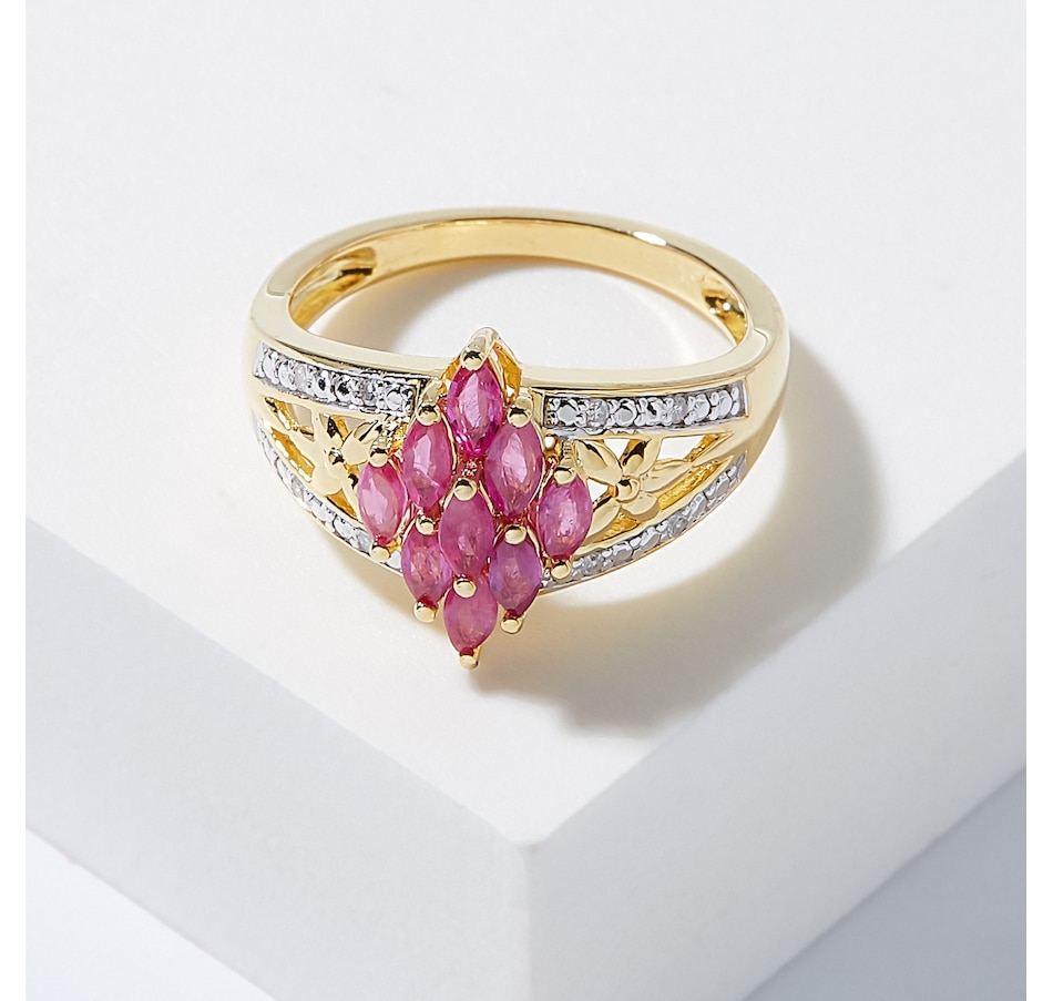 • (9) 4mm x 2mm marquise shape prong set faceted choice of gemstone: ruby or blue sapphire (0.80 av. ctw)