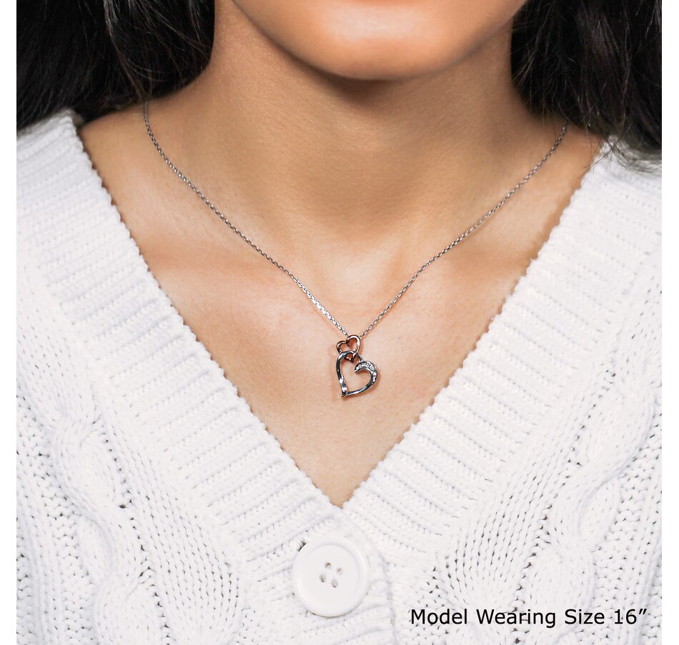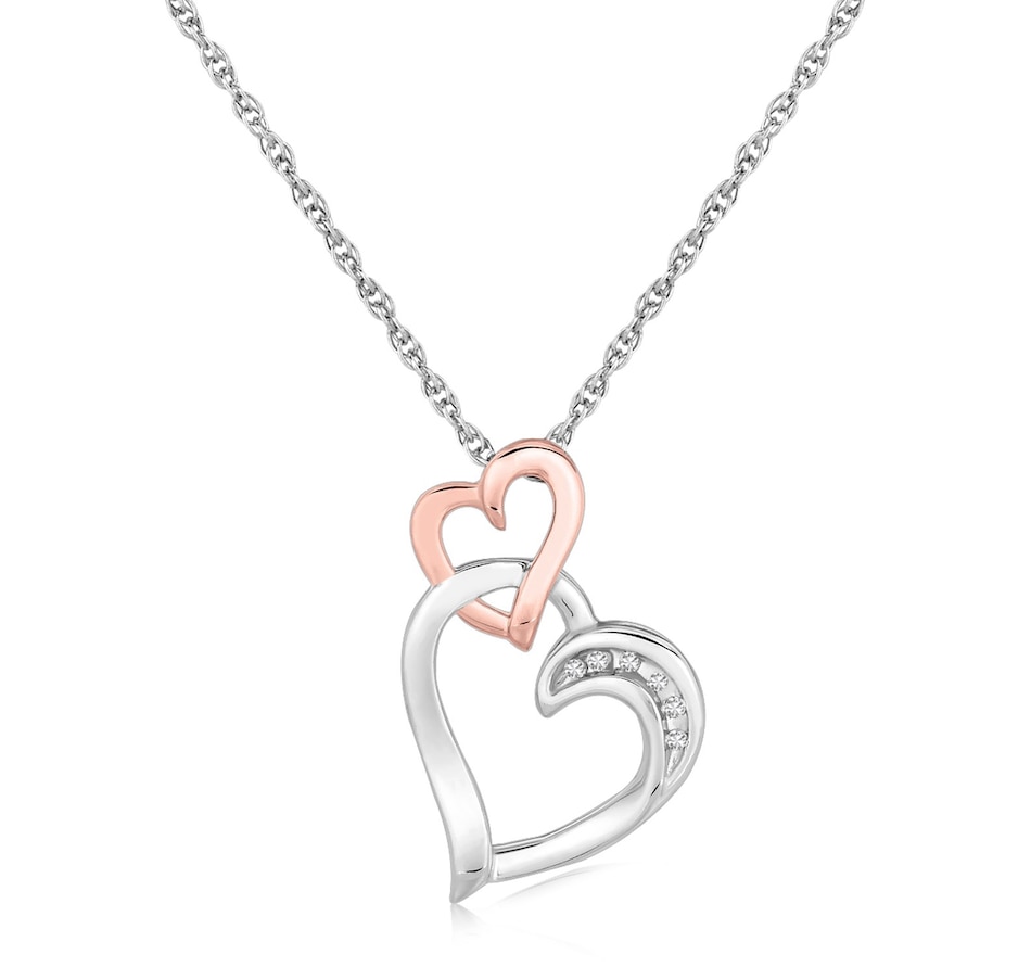A glamorous diamond embellished heart motif is suspended from a rose gold-plated upper element on this gorgeous cascading style pendant. Crafted in sterling silver.