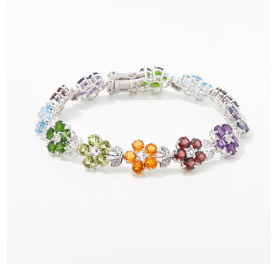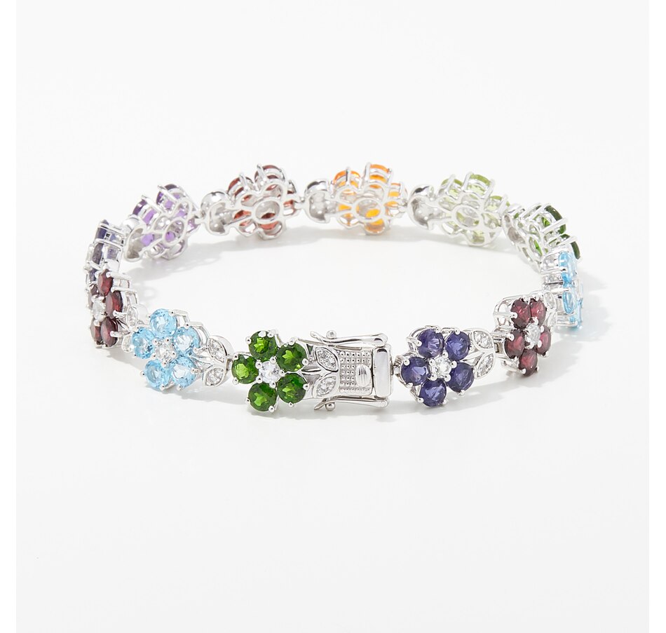 • (5) amethyst (1.06ctw), (5) Swiss blue topaz (3.06ctw), fire opal (1.32ctw)