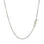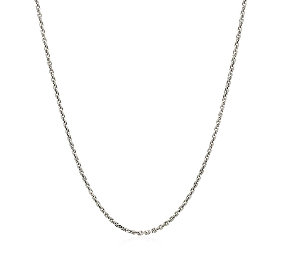 This rhodium-plated cable chain comes in sterling silver and has a width of 1.4 millimeters.