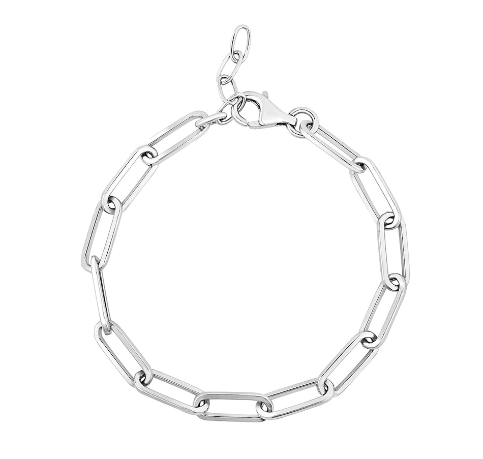 This bold and inspiring bracelet features beautifully polished and bold links of sterling silver paperclip chain. Bracelet is 8 inches long, 5.9mm wide, and closes with a lobster clasp.
