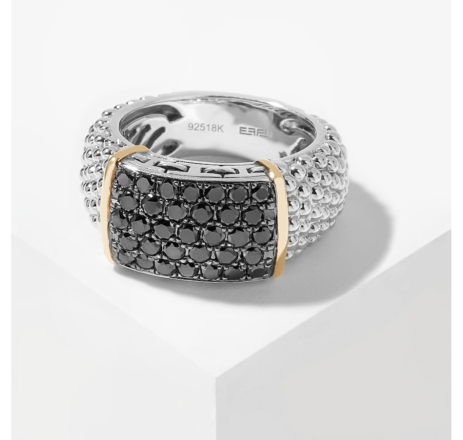Sterling Silver/18K Yellow Gold Black Diamond Ring