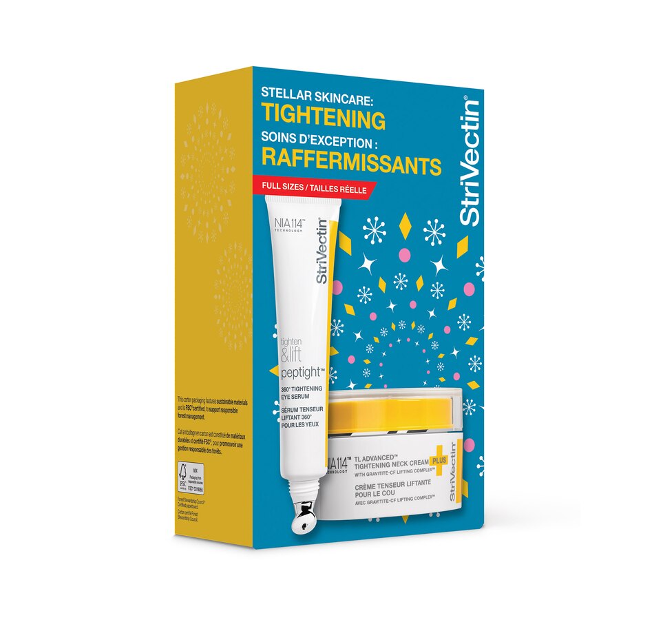 This collection of our best-selling tightening formulas is the perfect start for tighter, brighter, lifted skin around the eyes, neck and décolleté. Peptight™ 360 Eye Serum is a new & improved formula that harnesses the power of three unique peptides for dimensional results along the upper and under eye, crow's feet and eyelids. Plus, the metal applicator provides instant cooling & depuffing effects. Finish your routine with the Neck Cream that is everything you need for a more youthful-looking neck & décolleté in one powerful formula.