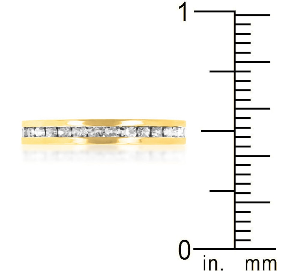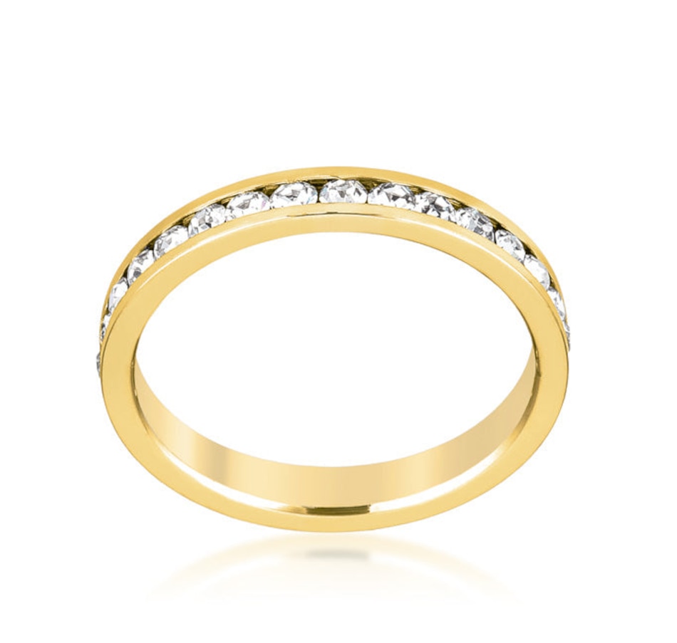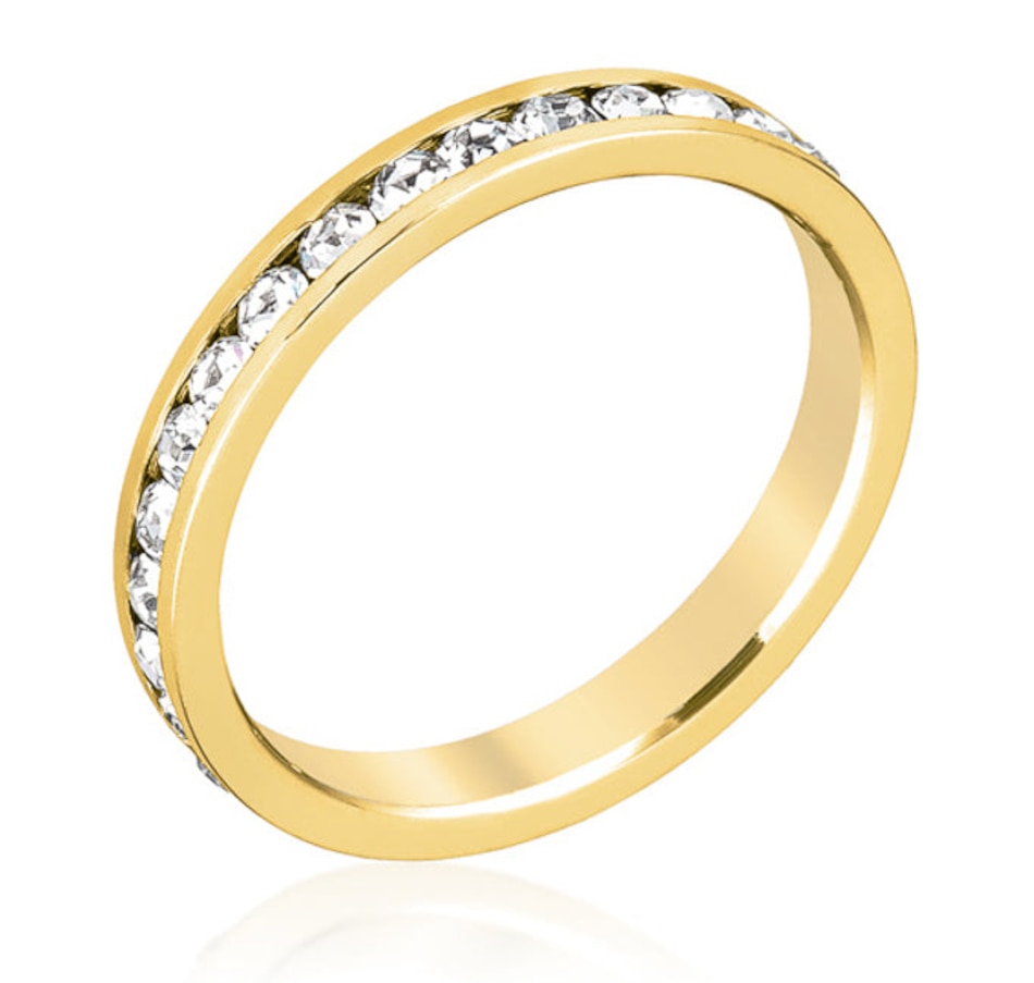This petite eternity band comes in many different styles for you to choose from. 18k plated gold is achieved using an electroplating process that coats the item with heavy layers of 18k Gold and color-treated to display a perfect 14k Hamilton gold color.