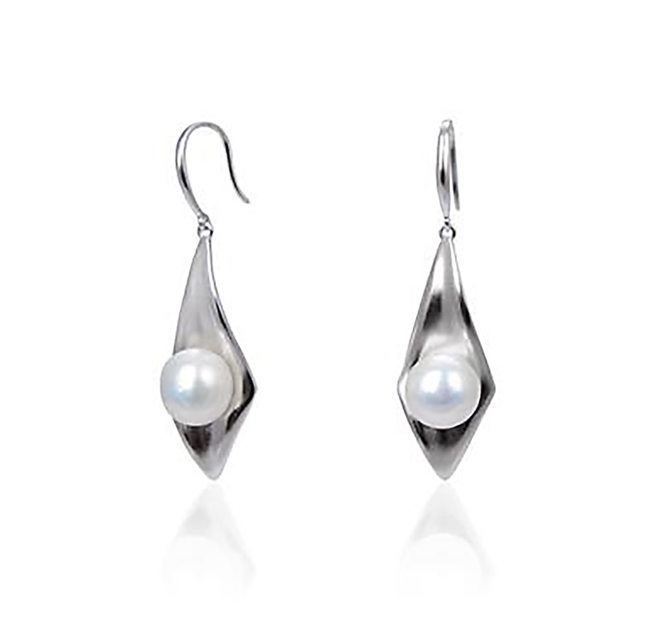 Elegant and timeless, these silver sterling dangling pearl earrings from Sugoi Pearls are sure to garner compliments with their beauty and charm.
