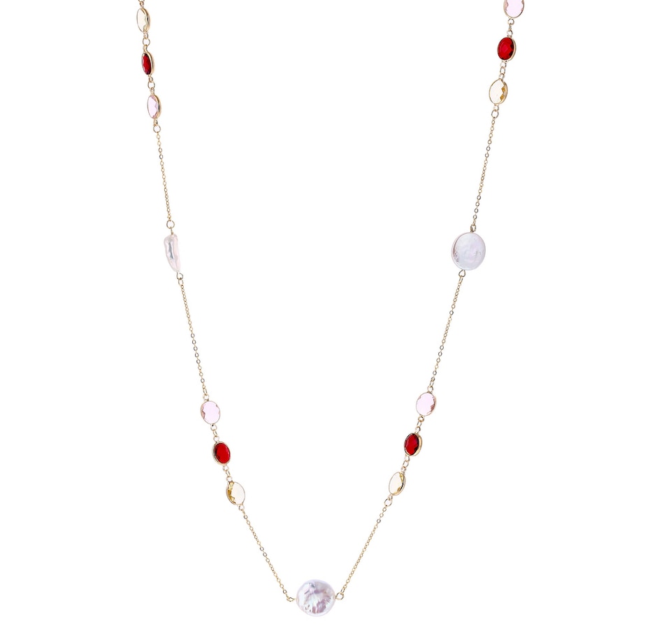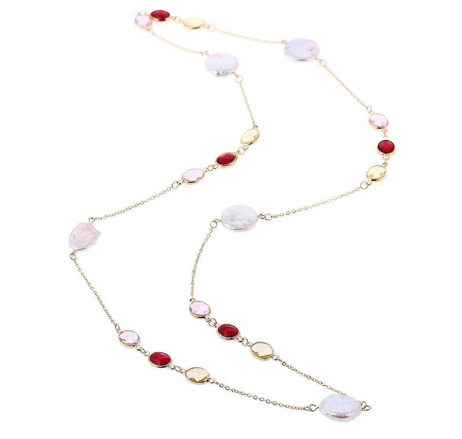 Sugoi Sterling Silver 32" Keshi Pearl and Gemstone Station Necklace