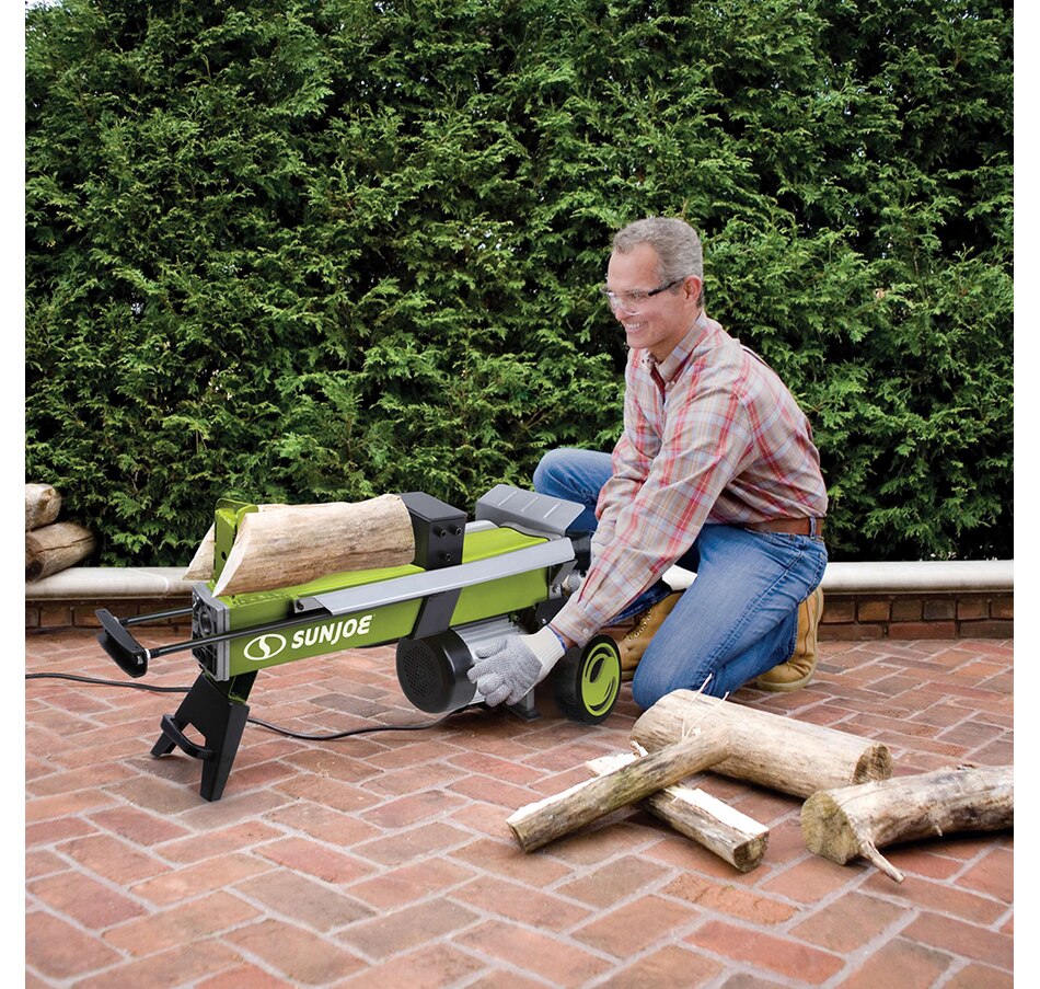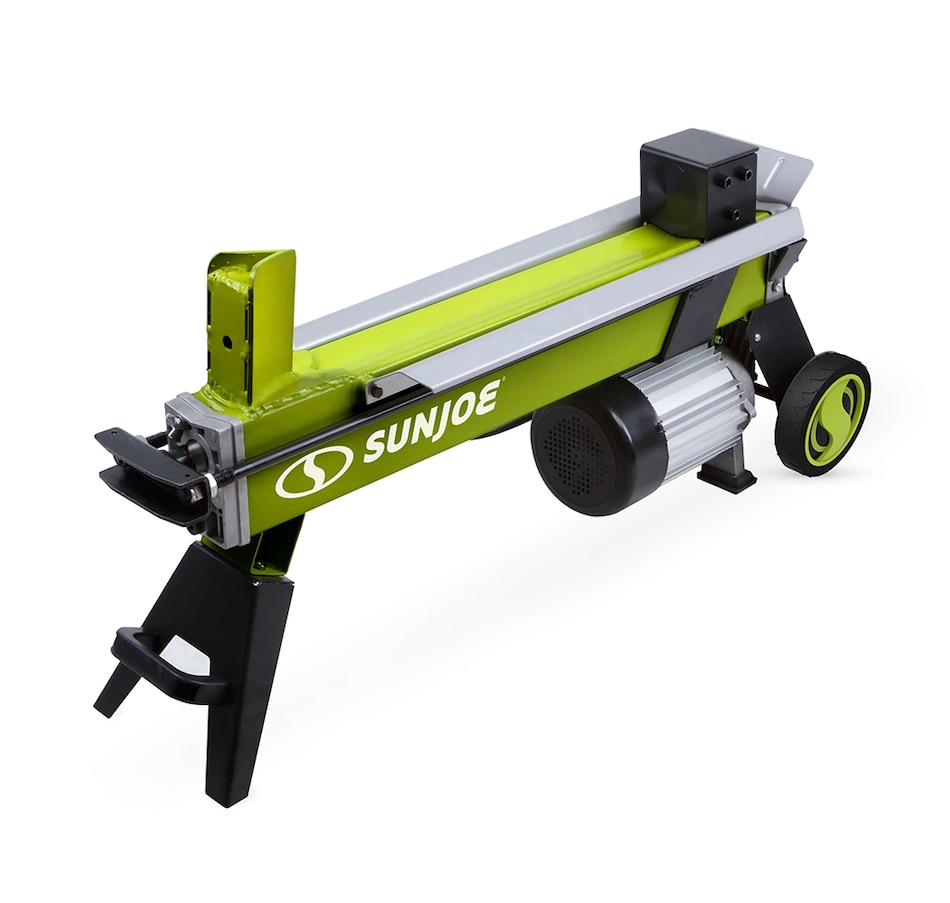 The Sun Joe LJ602E is a portable log splitter made for home or light-duty use. Its powerful 15-amp motor generates an approximate driving force of 5 tons, which can easily split your standard size firewood log measuring 10" by 20.5". Equipped with rear wheels, it can be easily moved to different work areas. Plus, it's durable steel construction means long-lasting wear. This electric log splitter offers several safety features including an overload circuit reset button and a dual-handed safety switch system. This machine is ETL-inspected and approved and comes with a full two-year warranty from the manufacturer.