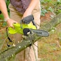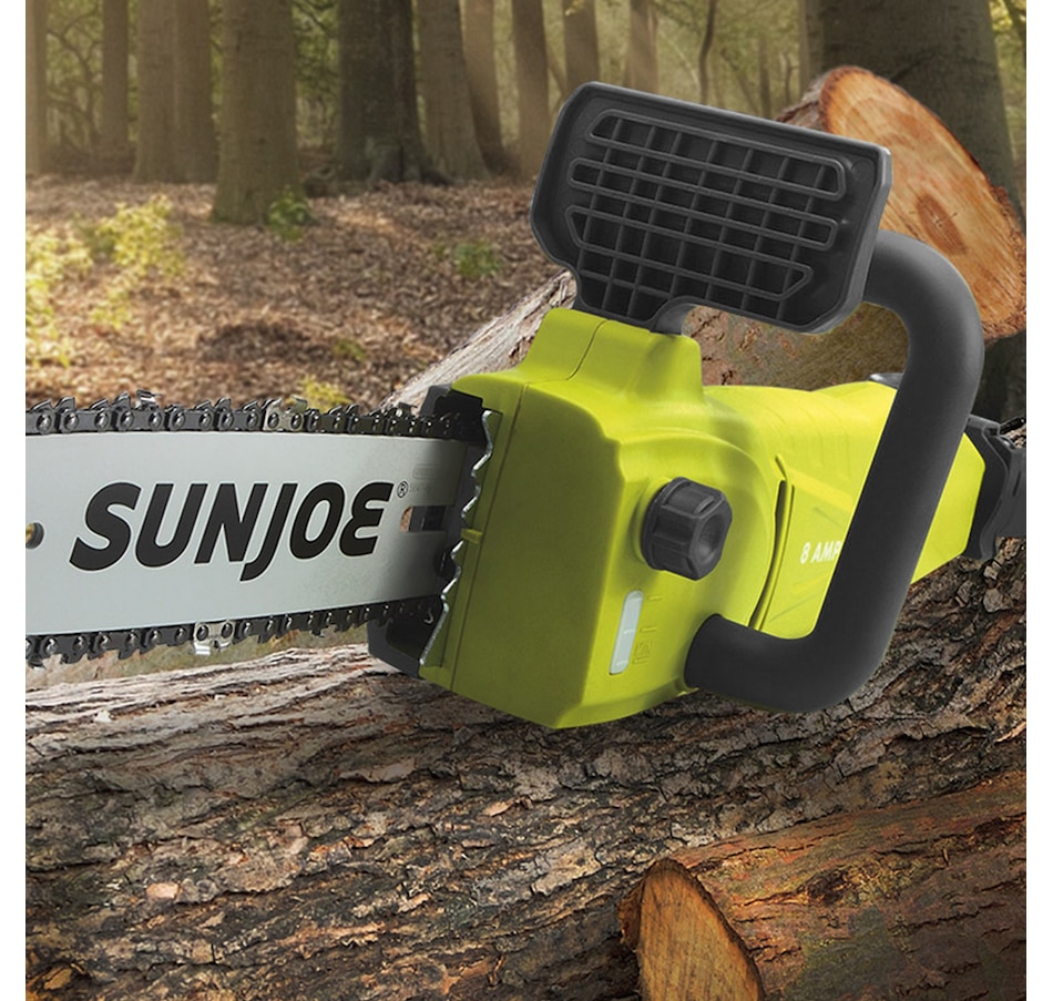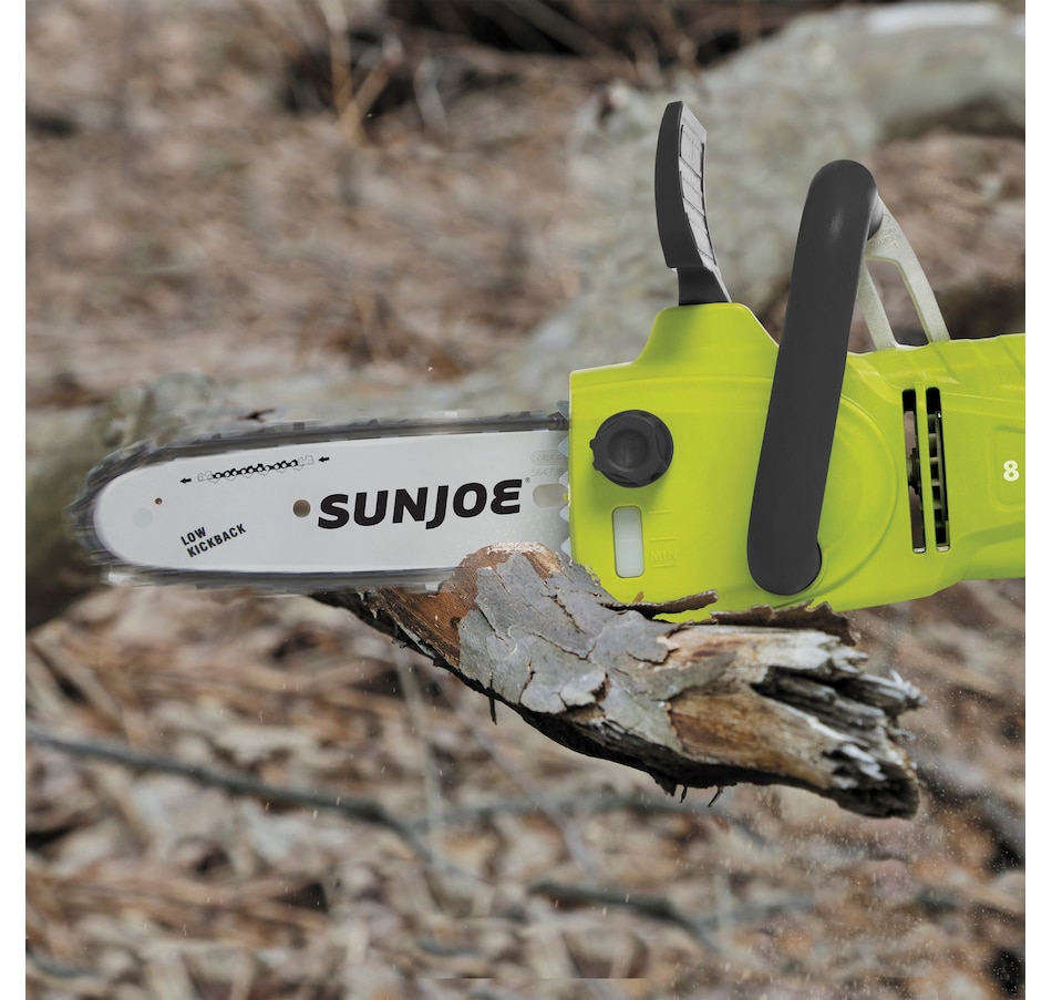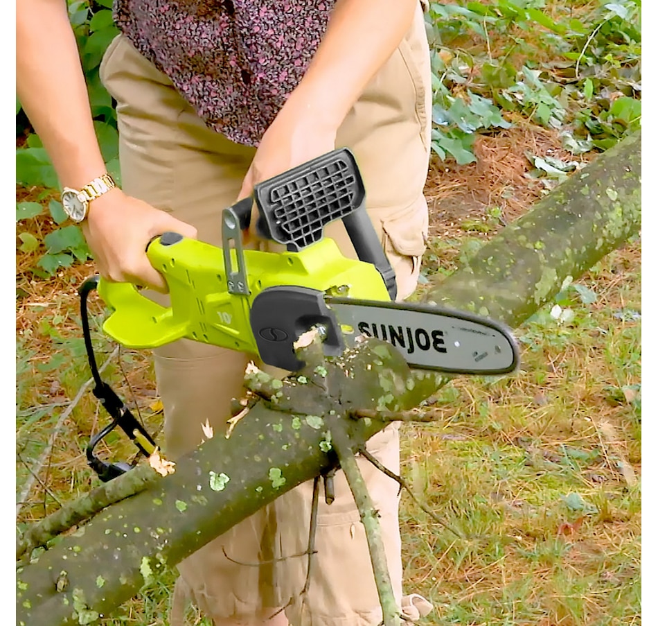 Powered by a robust 8-amp motor, it can handle the most stubborn tree limbs up to 9.5" thick. It features a durable, 10" Sun Joe bar and chain with an auto-oiler to keep it fully lubricated during use. Unlike gas-powered tools, it runs electrically, so you’ll power up reliably with the push of a button, without having to deal with smoke, fumes, spark plugs or costly tune-ups. Plus the SWJ807E comes equipped with a built-in safety switch to prevent accidental starting.