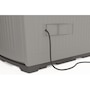 Add sophisticated style and storage to your deck or patio with the Suncast® Backyard Oasis® storage unit. Offering a 130-gallon interior capacity, it provides easy storage for outdoor kitchenware, grilling utensils, patio cushions, throws, and pillows. This unit includes a cut out for electrical cords that can be closed when not in use, and also has a metal-reinforced, adjustable shelf that further increases your organizational opportunities. Durable resin construction is accented by sturdy, pad-lockable doors that provide superior strength and security (lock not included). Plus, the modern stylish reeded design helps accent your outdoor environment.