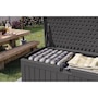 • Large storage capacity is ideal for storing cushions, garden supplies, and yard accessories