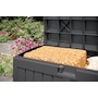 Protect patio cushions and other outdoor accessories with this durable medium deck box from Suncast®. The arched lid is designed to help keep rainwater from collecting. Plus, the long-lasting resin construction means your deck box is easy to clean all year round. Offering 50 gallons of spacious storage and a molded in lock feature for extra security, this unit is ideal for storing furniture cushions, organizing essentials, and much, much more. The stylish design adds a unique and complementary accent to any environment.