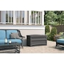 This versatile 73 gallon medium deck box by Suncast® is the ideal addition to any outdoor living space; providing both a classic design and unique function. It's ideal for storing furniture cushions, gardening supplies and other outdoor accessories, and its flat surface provides a convenient seating option. Integrated wheels and pull handles allow for easy portability. The weather-resistant design of the lid, along with the solid resin construction is built to last and protect contents from the elements all year long. The all-weather resin construction provides water resistance and UV protection for up to five years.