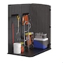 This extra large vertical shed is ideal for storing a variety of lawn and garden equipment. The slim footprint design fits nicely along a house or garage for when yard space is limited. Double-door entry allows easy access to 106 cubic feet of storage space. Constructed of multi-wall resin panels, this durable shed can hold up to the elements and protect your items all year long.
