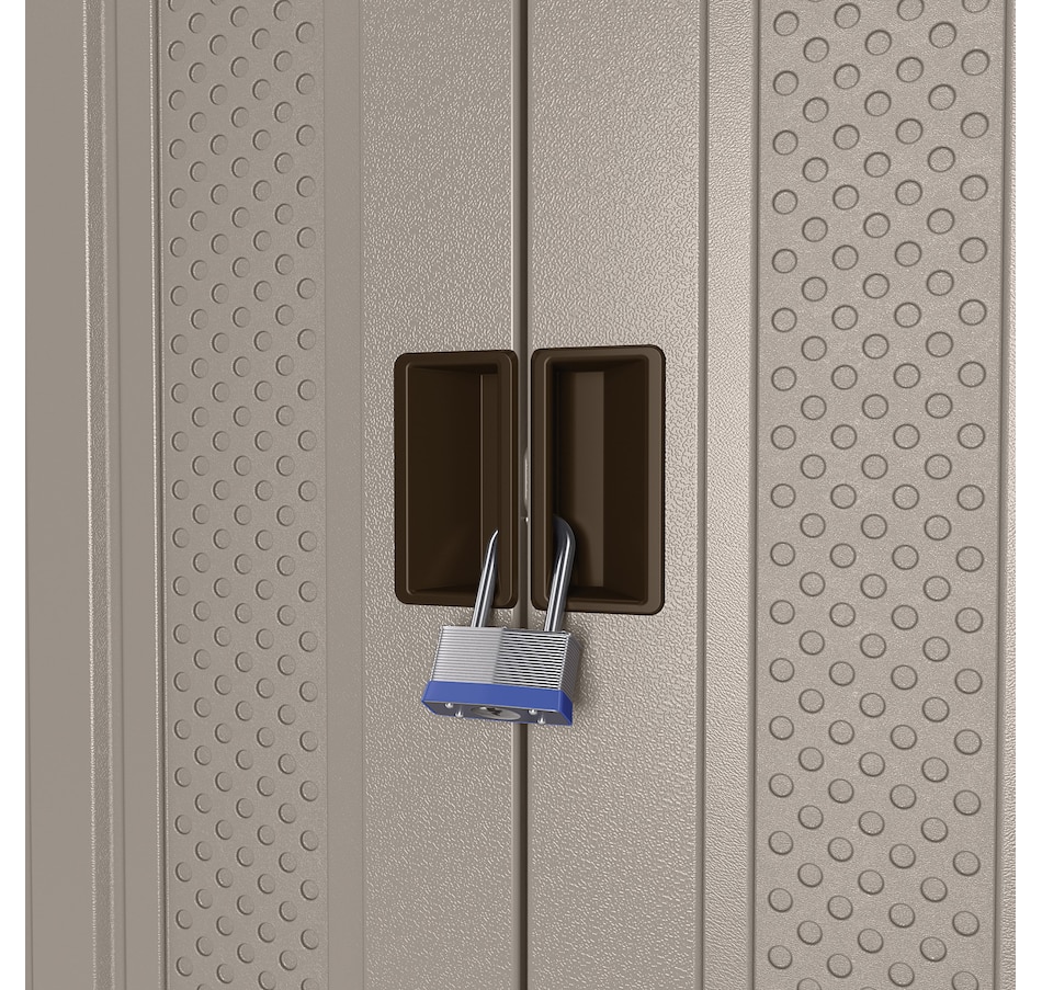 • Pad-lockable doors for added security (lock not included) and includes upper and lower latch to keep doors closed and secured