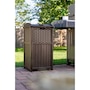 This Suncast Trash Hideaway Refuse Container has a stylish design that looks great on any patio or deck and will help keep your yard clean all year long. This unit uses standard 30 – 33 gallon trash liners and features a latching lid to keep your garbage in and unwanted critters out. Durable all-weather resin construction is easy to clean and maintain, while the solid bottom panel enhances product stability.