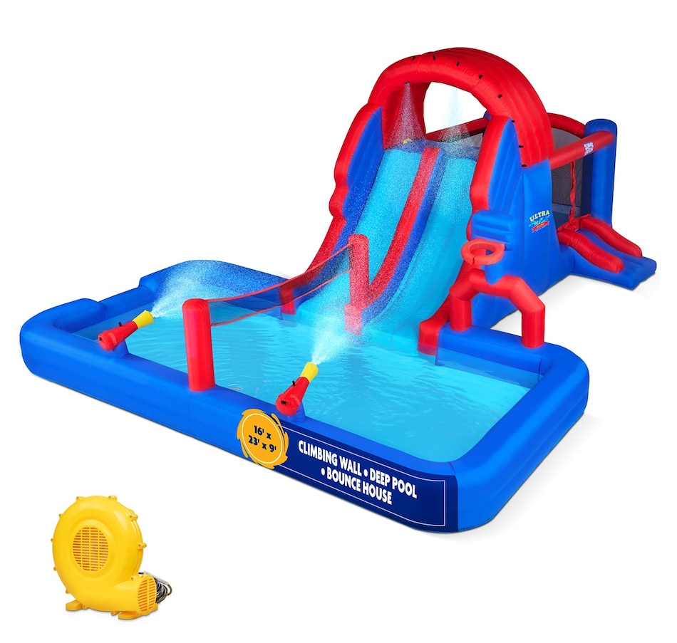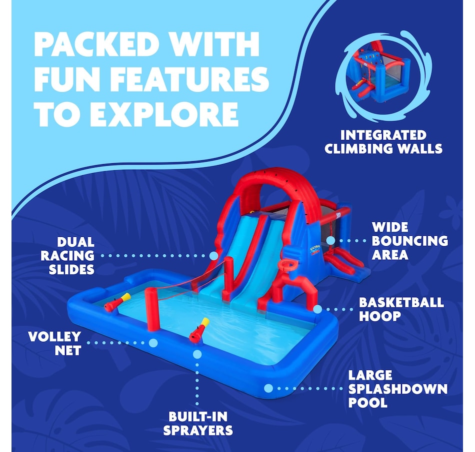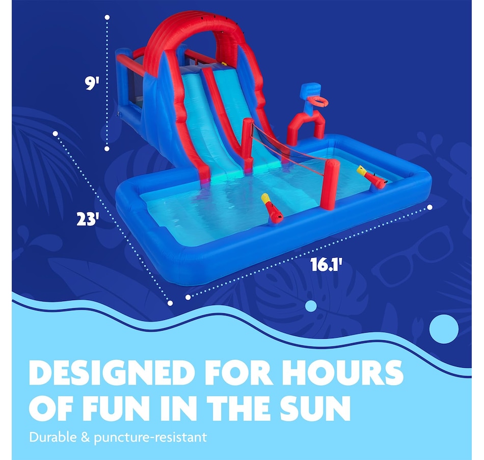 Ultra All-Play Inflatable Water Slide Park with Bounce House, Volley Net & Deep Pool