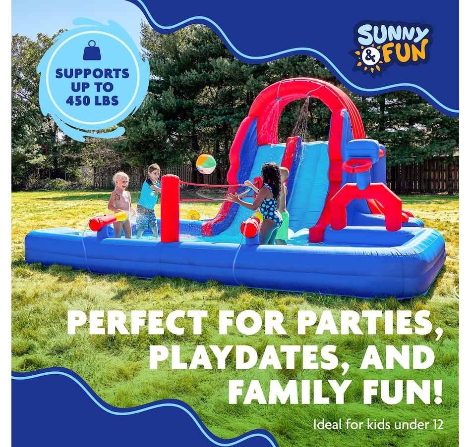 Get summertime, water-soaked excitement right in your backyard with the Sunny & Fun Ultra All-Play Inflatable Water Slide Park.