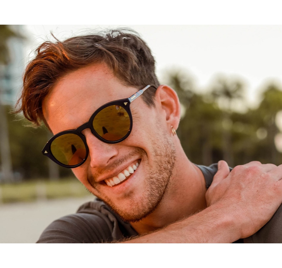 Experience a unique blend of vintage shape and on-trend colors with our Sunrise sunglasses. Designed for a comfortable fit, these sunglasses feature a navy acetate frame, tortoise temple, and gold mirror TAC polarized lenses. The extra detail of the tortoise temple adds a touch of elegance to any outfit. Upgrade your look with the Sunrise sunglasses today.