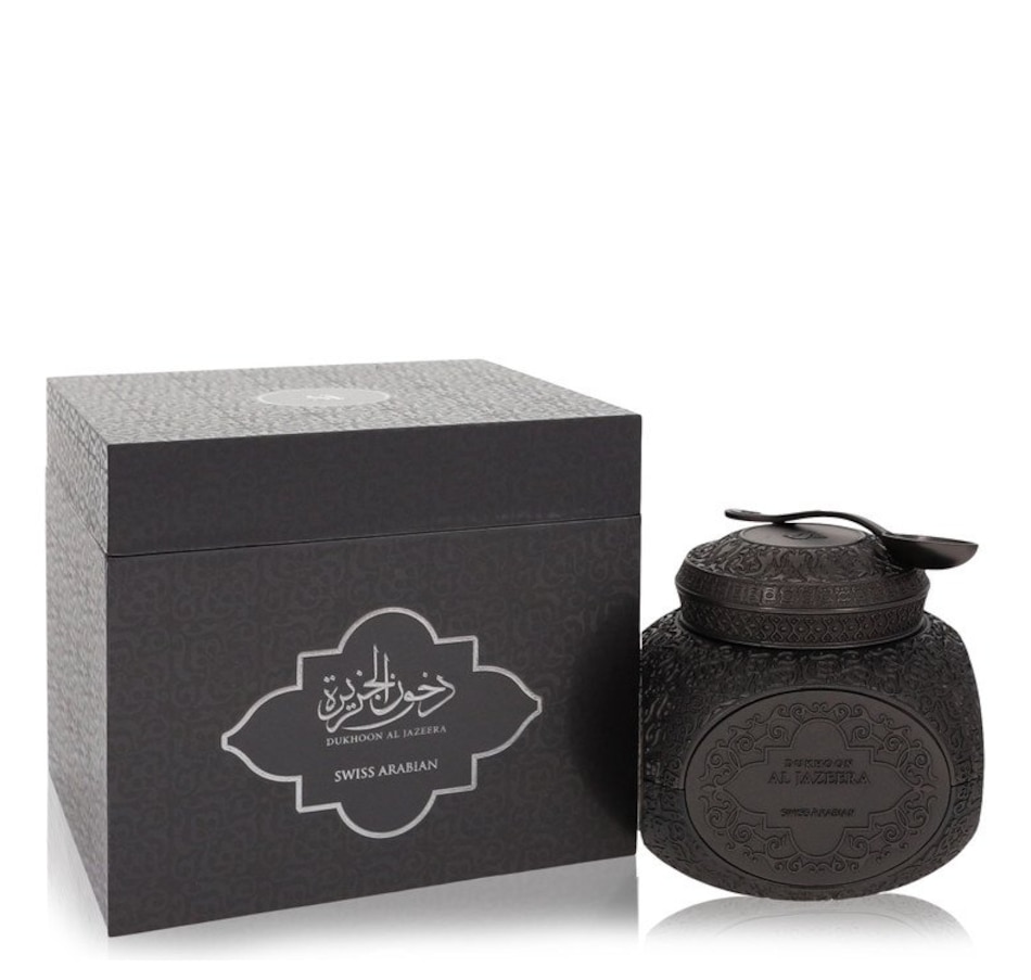 Swiss Arabian Dukhoon Al Jazeera Bakhoor offers a sensual and luxurious getaway with floral, spicy, woody, and warm notes. This scent perfectly pairs rose and oud to awaken the senses before revealing a complex and decadent heart. Galbanum’s bitter green tones complement amber’s cozy warmth while saffron, clove and cardamom blend their earthy and sweet effects.