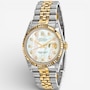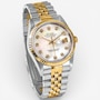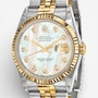 The mother‑of‑pearl diamond dial steals the spotlight in this independently certified Swiss Crown pre‑owned Rolex Datejust watch—its iridescent surface shifts beautifully in changing light, amplified by ten diamonds. Stainless steel and 18K yellow gold set the stage for its luminous character, while the Jubilee bracelet enhances refinement. Newly restored, this 36‑mm automatic watch delivers captivating elegance.