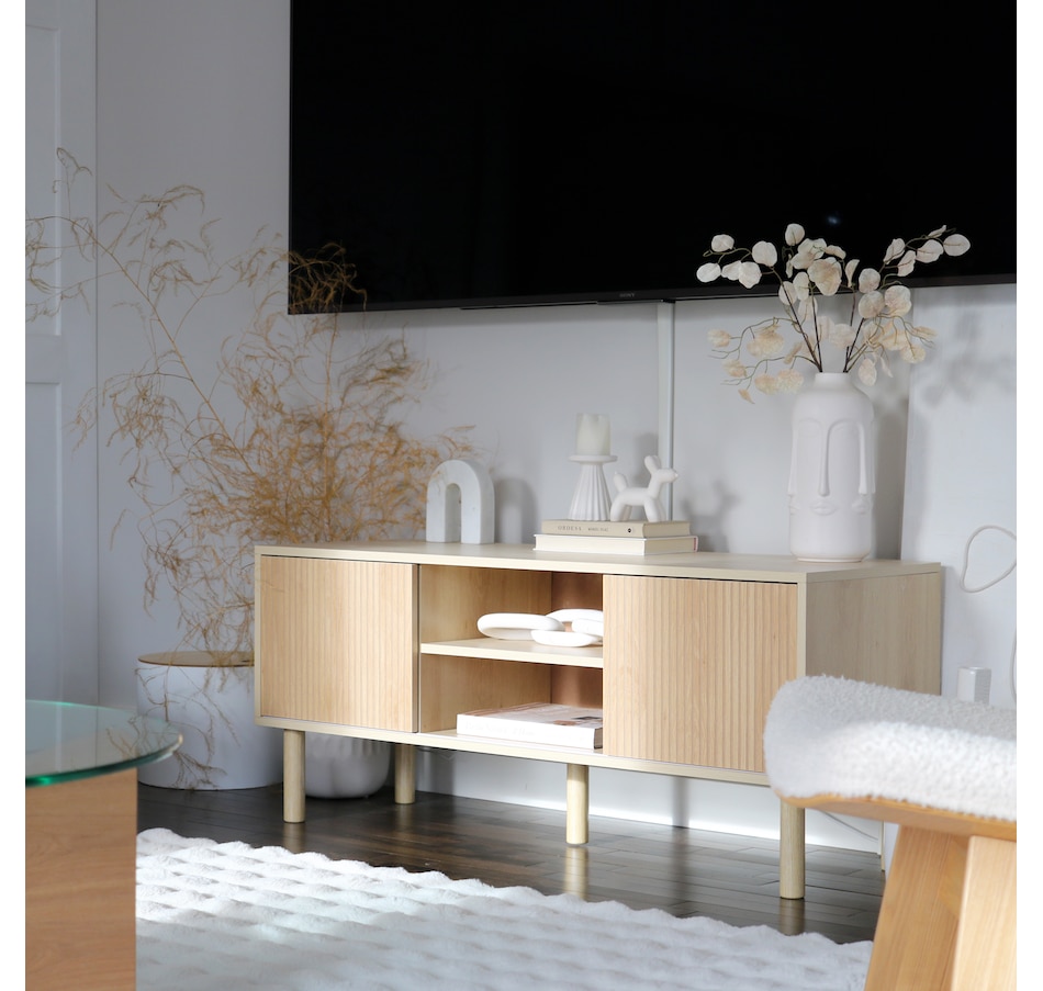 TV Unit Cabinet for TVs up to 50 Inches TV Stand with Sliding Doors Natural