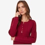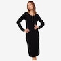 This cable sweater midi dress from TWRHLL features side slits and a button placket at the centre front. It also has set in bell long sleeves, and rib trims at the bottom and sleeve openings.