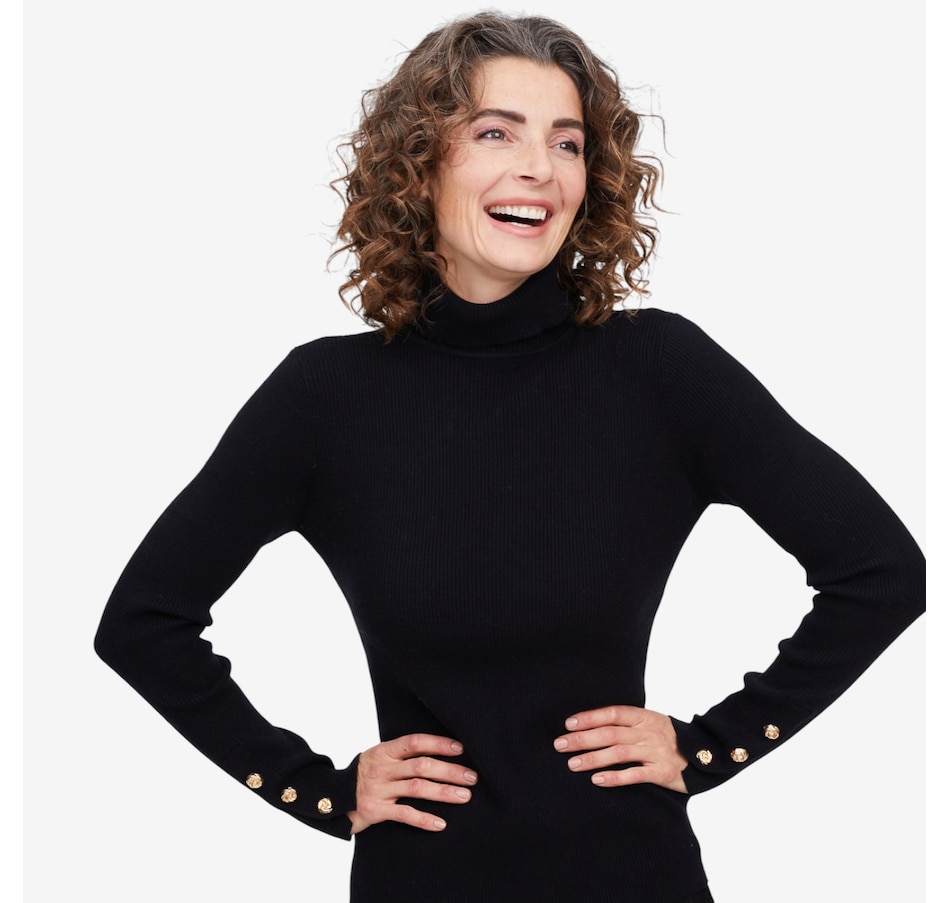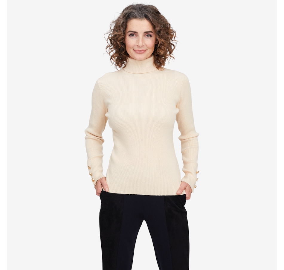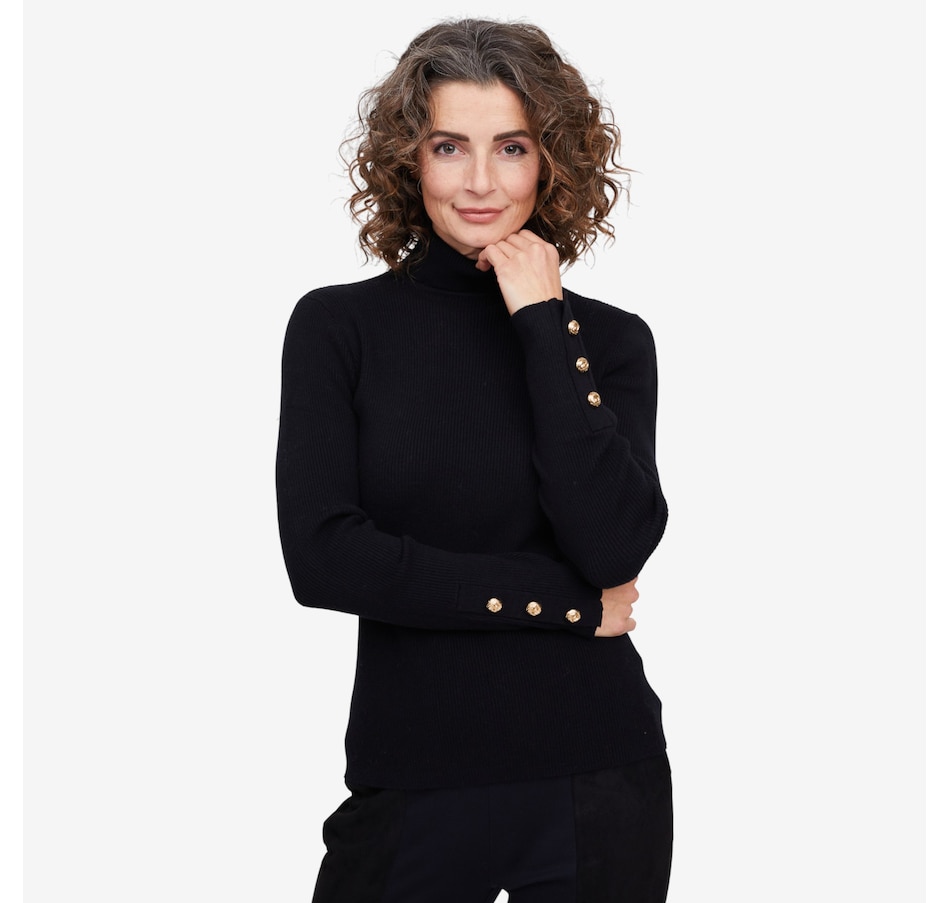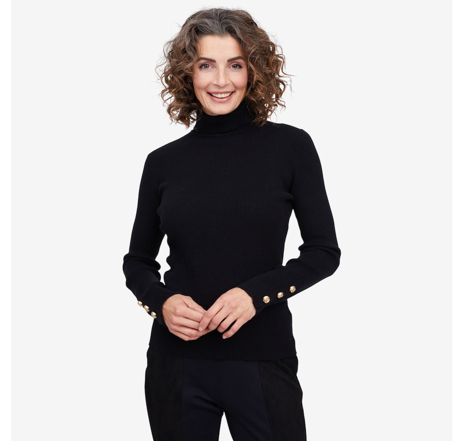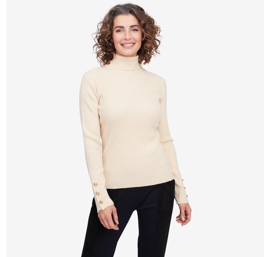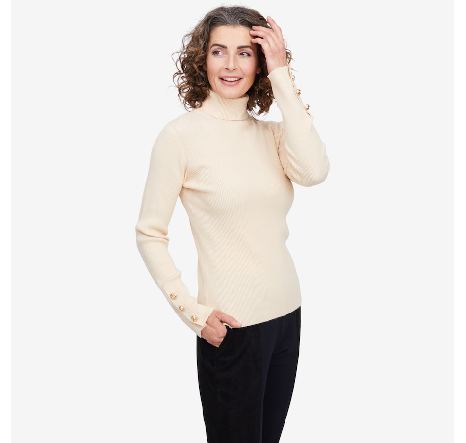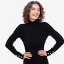 Long Sleeve Ribbed Turtleneck with Button Detail