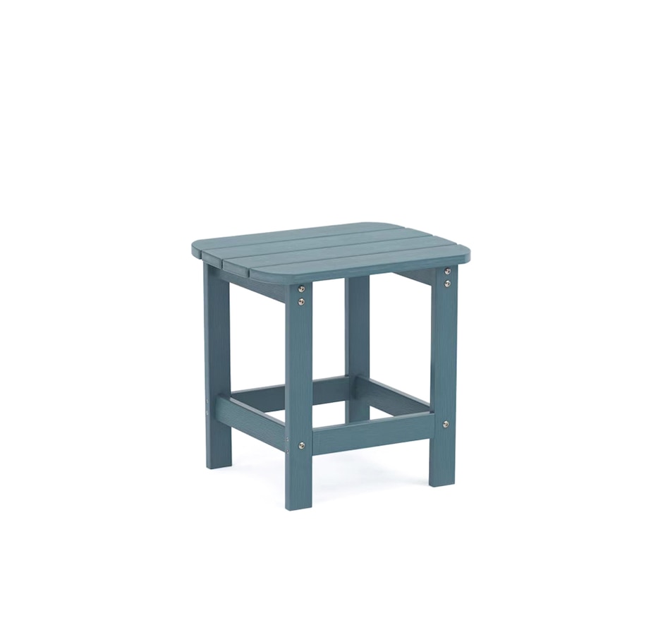 Constructed of 100% weather-resistant polycarbonate, the side table is UV protected and designed for indoor or outdoor use. Unlike wooden furniture, the simulated wood will not fade, peel, chip, splinter or rot when exposed to the elements and never needs to be painted or varnished. It is easy to clean and seamlessly complements any outdoor décor, making it a versatile addition to your patio, deck, garden, indoor sunroom or poolside.