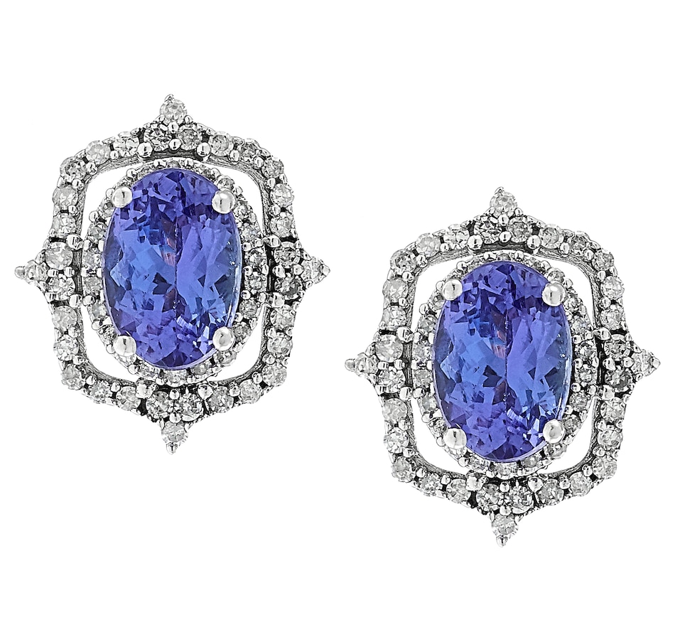 14K White Gold Tanzanite and Diamond Double Halo Earrings