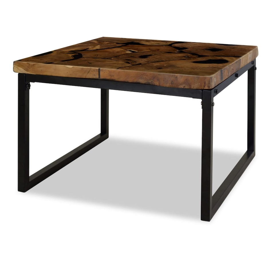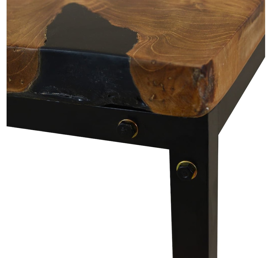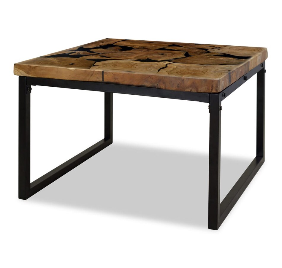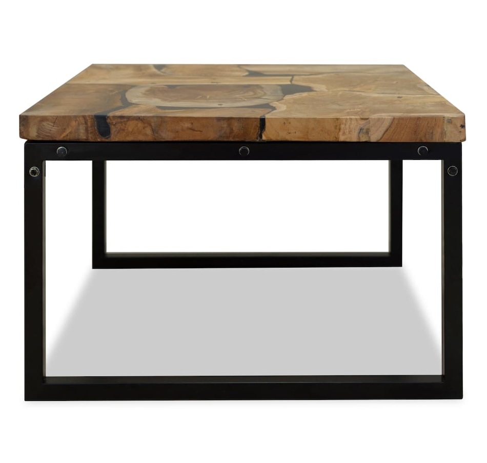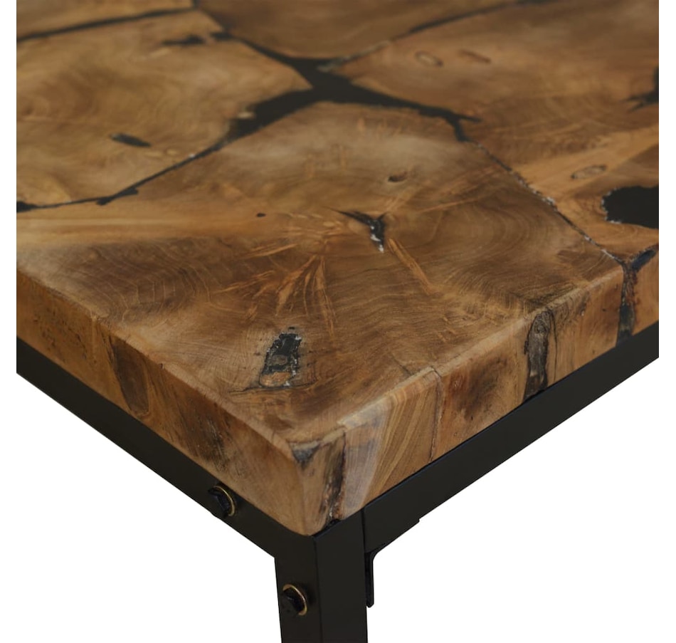This unique coffee table, made of real teak with black resin, exudes rustic charm and is an attractive décor item. The coffee table can also be used as a side table, auxiliary table, etc. The table top is entirely handmade from real teak and provides a stable and secure surface on which you can place your drinks, vases, fruit bowls or decorative items. The steel frame makes this coffee table very stable, sturdy and durable. Assembly is easy. Important note: Color may vary from piece to piece, making each of our coffee tables unique; delivery is random.