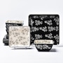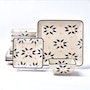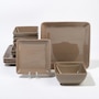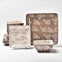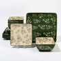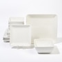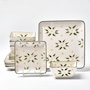 • Approximate measurements: dinner plates 10.5" x 10.5" x 1.18"; salad plates 7" x 7" x 1"; bowls 6" x 6" x 3.2"