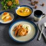 • Terra Bella 16-Piece Dinnerware Set (cream, blue rim, stoneware)