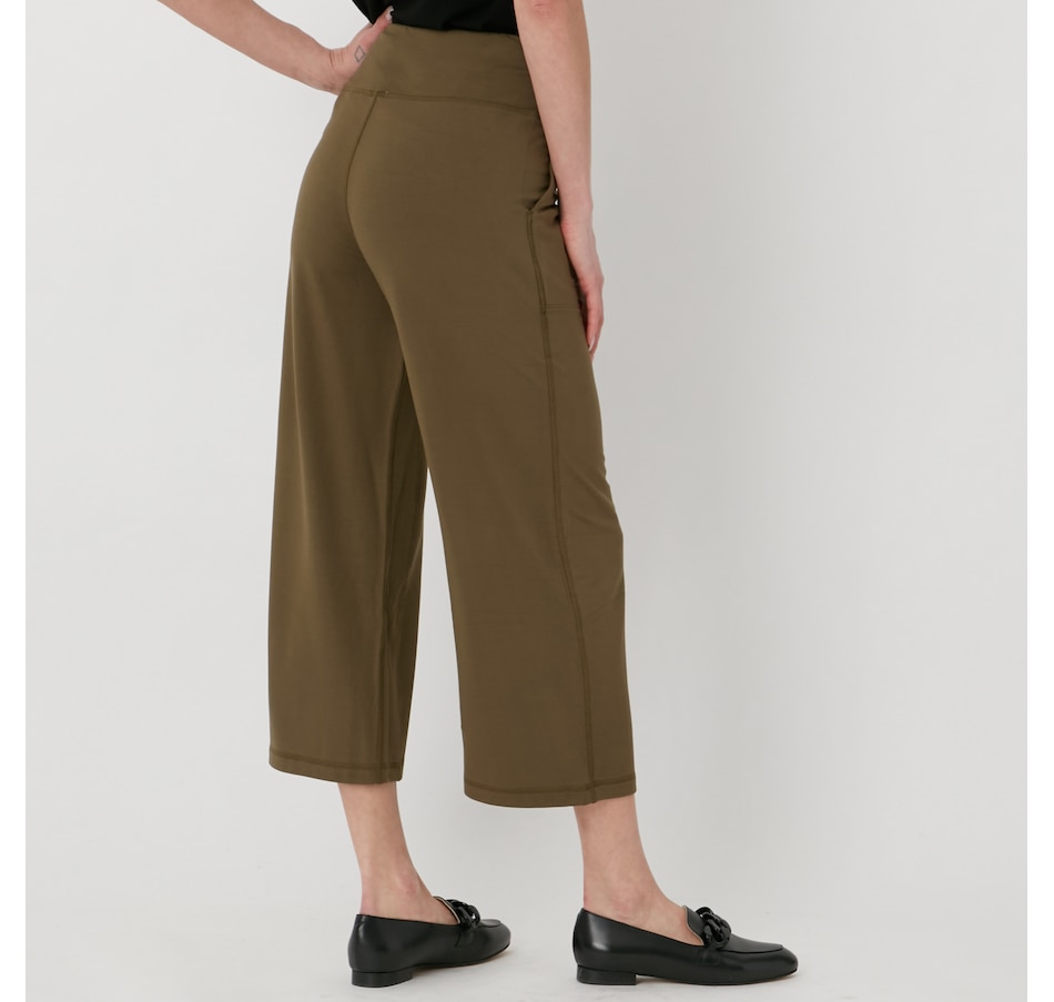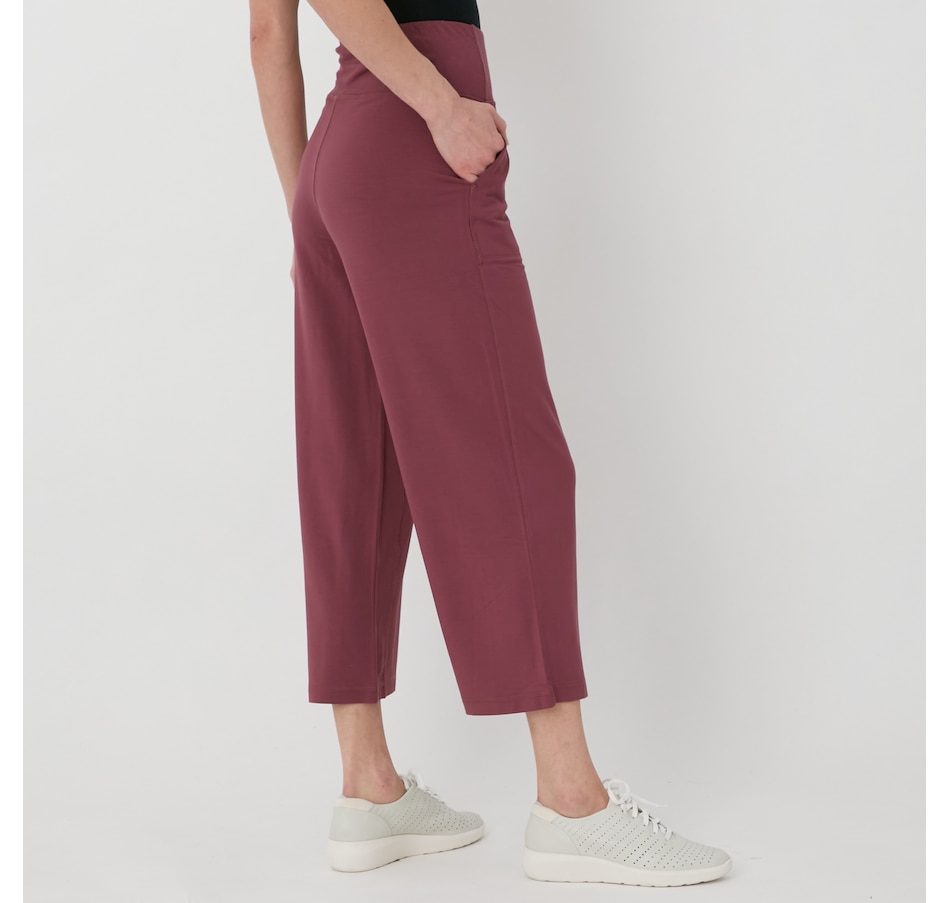 • Elastic wide waistband, pull-on, mid-rise, semi-fitted