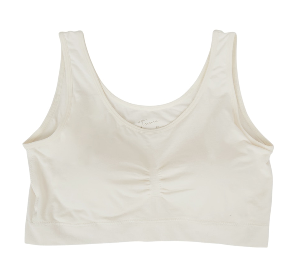 • Pull on, fitted, bralette, padded-cup, wide shoulder straps