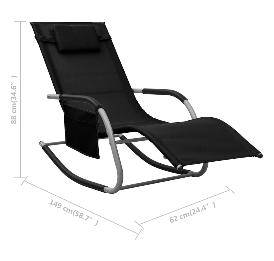 This elegantly designed lounge chair will be an ideal choice for you to relax and enjoy a day in the garden or on the beach. Made of textilene, this lounge chair is weather resistant. The powder-coated steel frame also makes the garden lounger sturdy and durable. The deckchair is equipped with a pillow, offering the greatest seating comfort. Thanks to the side bag, it's convenient to keep everything you need close at hand! You can store your cell phone, book or other small items in the removable side pocket.Note: In order to extend the life of your outdoor furniture, we recommend that you clean it regularly and do not leave them outside unprotected unnecessarily.Cleaning: Use a mild soap solution.Storage: If possible, store in a cool, dry place indoors. If the product is stored outdoors, protect it with a waterproof cover. Wipe and dry excess water or snow from flat surfaces after rain or snowfall. Allow sufficient air circulation to avoid moisture damage.