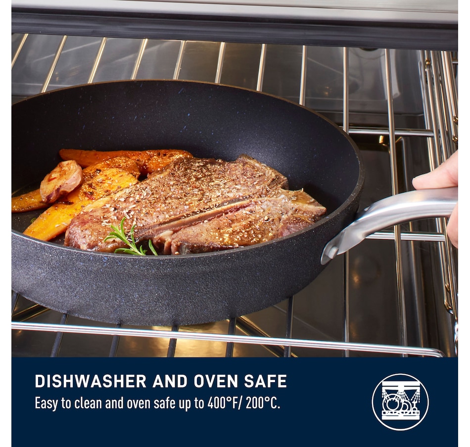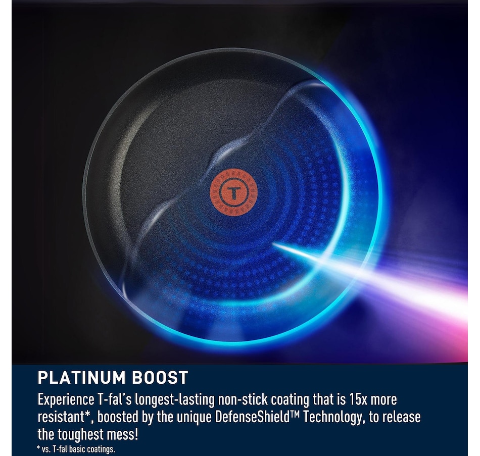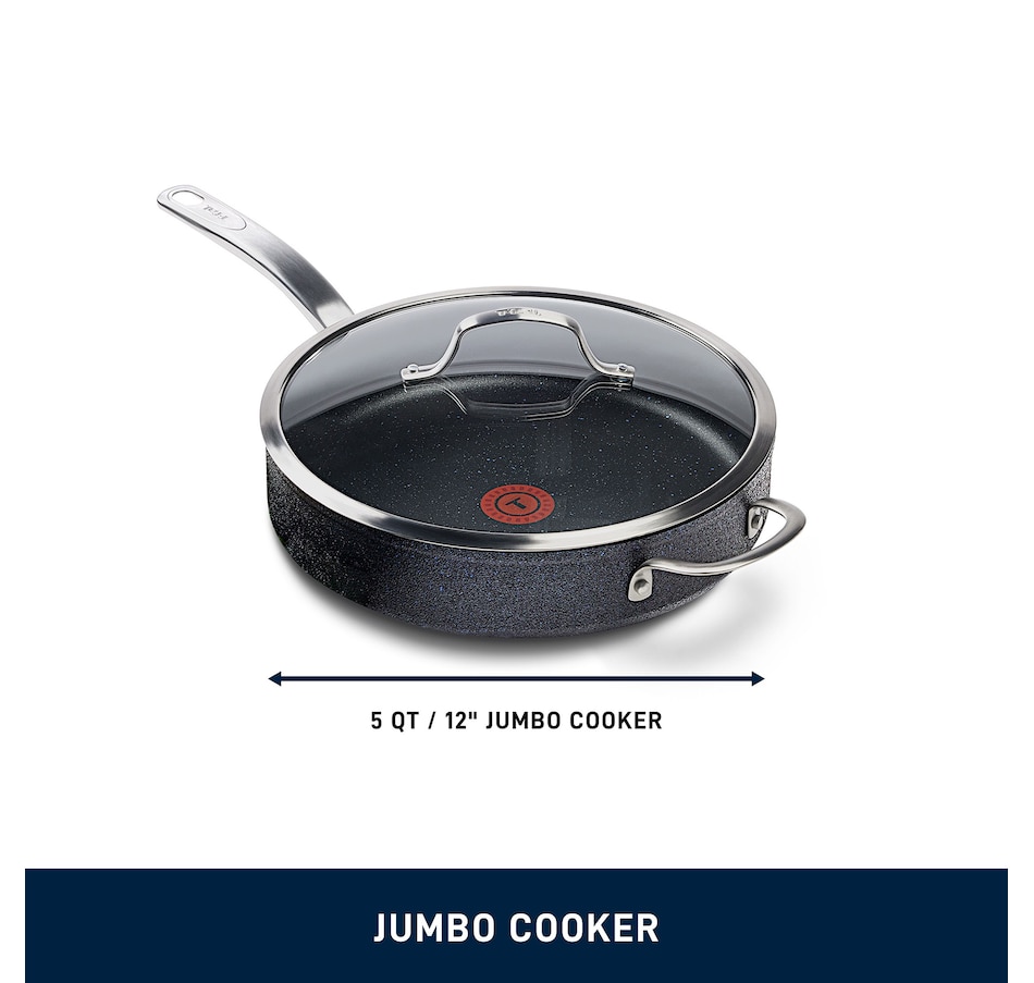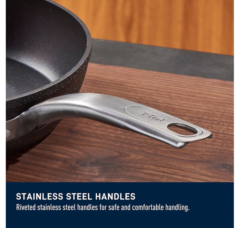 The T-fal StoneShield wok can revolutionize your kitchen. This premium cookware features the innovative DefenseShield Boost non-stick coating for surpreme resistance, which can ensure up to 20 years of intensive usage. The anti-warp six multi-layer construction strengthens its core and helps keep its shape over time, and the deep shape with its rugged rock texture helps guarantee durability.