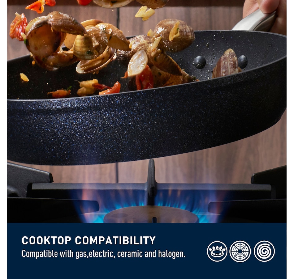 • Compatible with gas, electric, ceramic, and halogen cooktops