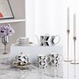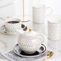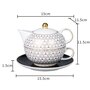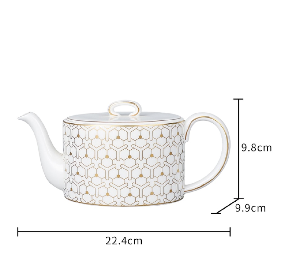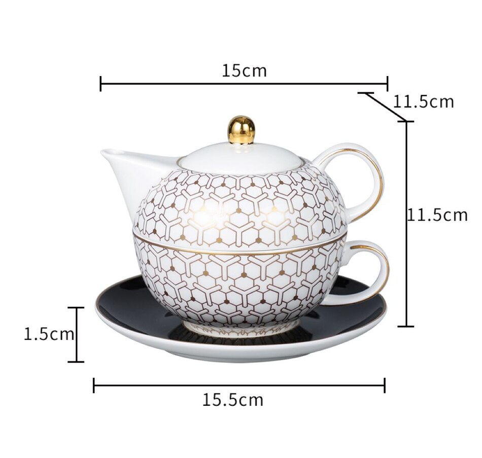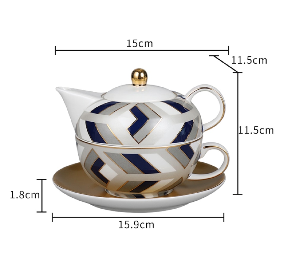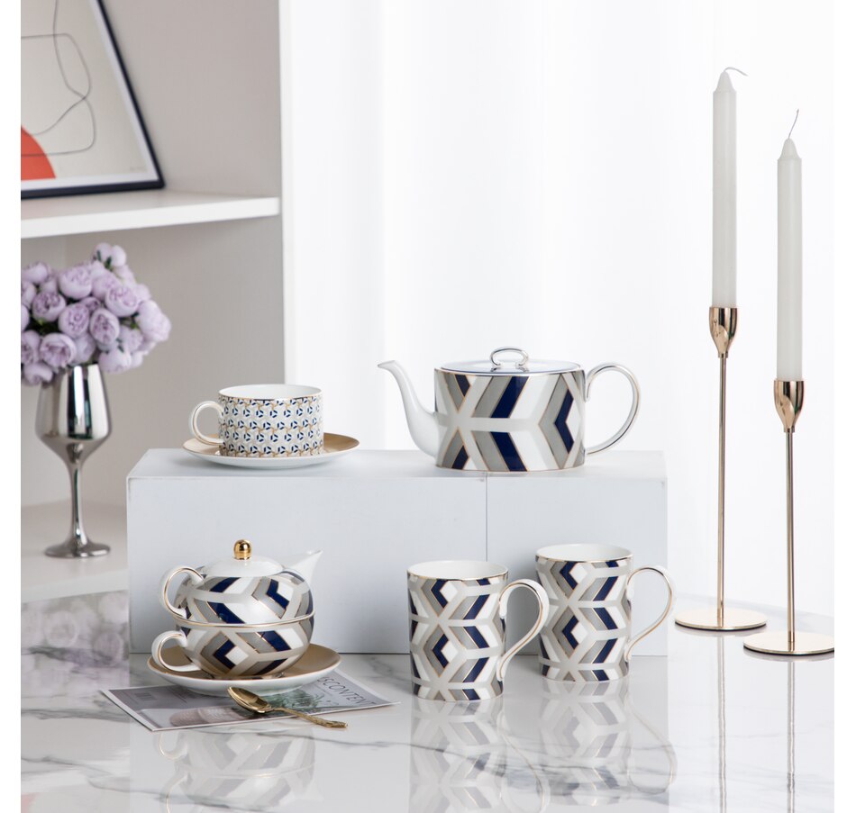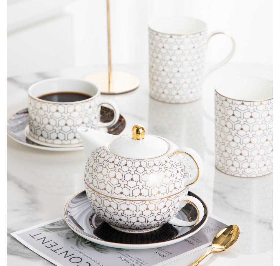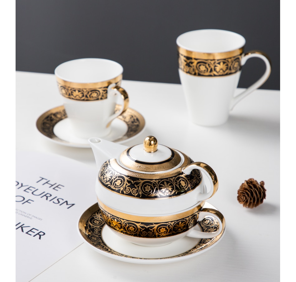 Fine Bone China is an excellent choice for an affordable and ethically appealing alternative for everyday teaware. The Fine Bone China collection combines durability with style, perfectly complementing contemporary table settings. This teaware is chip-resistant and keeps your tea warm for a long time. Our designs include solid-colored, striking patterns, ideal for modern and lively tea enthusiasts. Enjoy tea in your garden with these premium quality and exquisitely designed tea wares. Selecting the right teaware is crucial, and Fine Bone China ensures top performance for your tea-making needs..[Premium Material} Bring the hotel luxury home with for an affordable and ethically appealing alternative for everyday teaware. Combines durability with style, perfectly complementing contemporary table settings. Chip-resistant and keeps your tea warm for a long time. .[Design] Includes solid-colored, striking patterns. Ideal for modern and lively tea enthusiasts. Premium quality and exquisitely designed tea wares. Perfect for a relaxing tea experience in your garden and home..[Note] Do not use in microwave or on stovetop. The metallic trim can cause sparks and damage the appliance. Bone china is delicate and may be damaged by direct heat..Set includes: Coffee Mugs, Tea set, Tea for One and Tea Pot