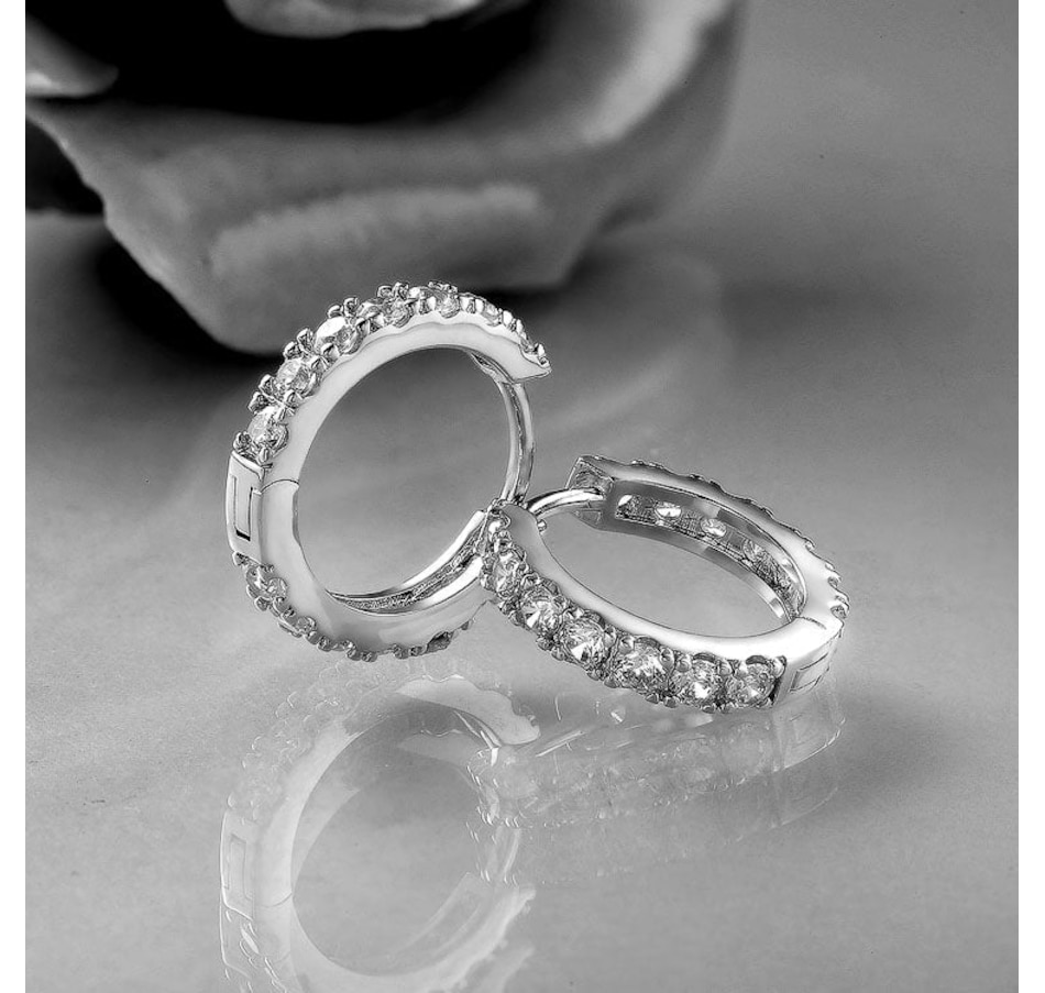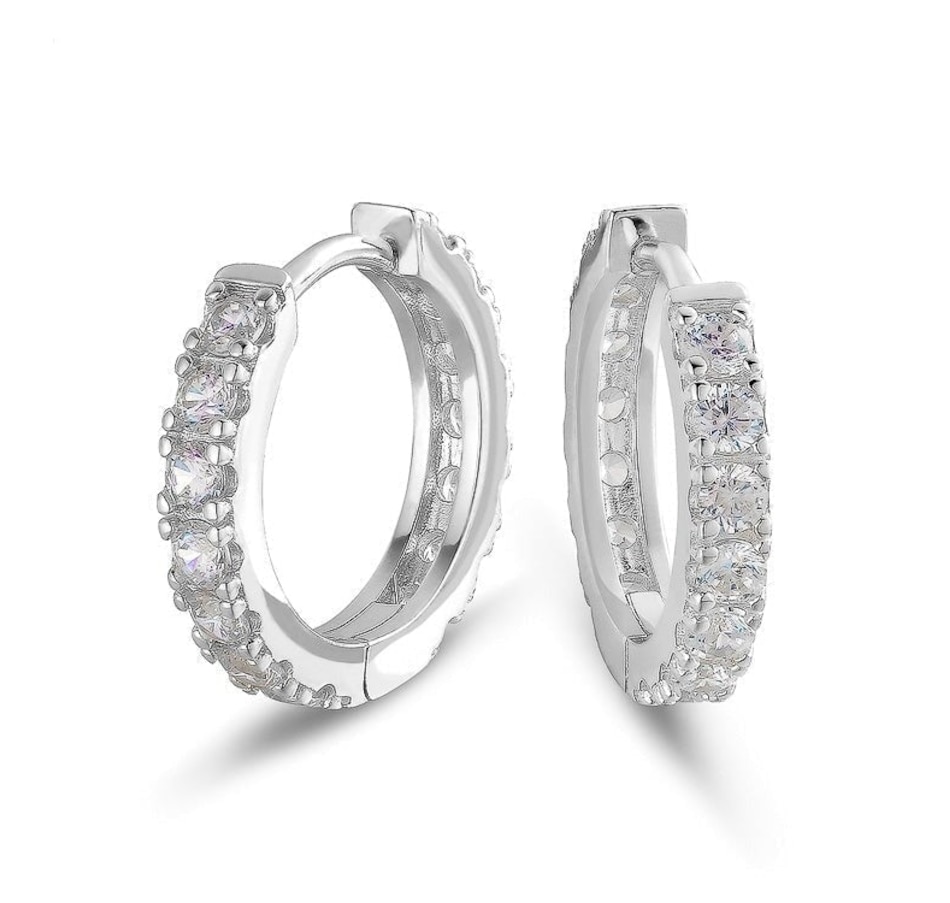 The single row iced hoop earrings are inlaid with round cut stones that can draw attention in itself.diamond hoop earrings are made of 925 pure sterling silver nickel-free. Each earring features 5A CZ handset stones for a bright presentation. All earrings are plated with real 14K gold/white gold for a complimentary finish with the cz diamond. Itvery suitable for daily wear.925 sterling silver with 5 times gold platingSafe for all skin typesHand-selected 5A quality CZ stoneClean and transparent, similar shining with real diamondsWon’t turn skin green No color fadingDetailsMaterial925 sterling silverFinish5 times plating for an everlasting shineColorWhite GoldDiameter15 mmStone TypeCubic Zirconia Stones with 5A qualityStone Amount160Weight2.7 gPackage ContentA pair of earrings, a gift box, a warranty card
