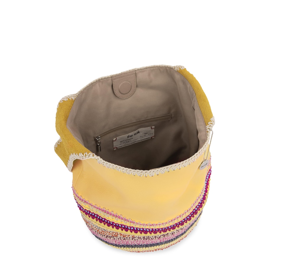 • Fabric: 100% leather with hand-crochet, recycled polypropylene yarn trim