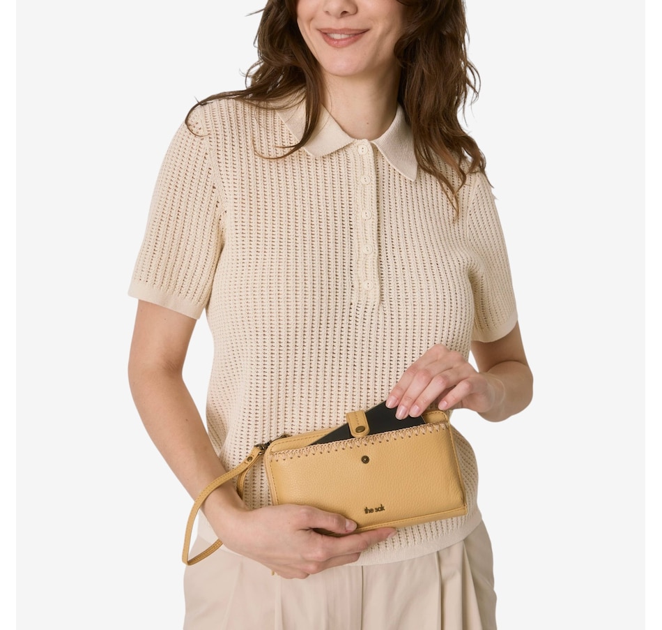 The Iris 3‑in‑1 large leather smartphone wristlet from The Sak is a customer‑favourite design that delivers maximum function in a compact silhouette. Thoughtfully crafted with an essentials‑only mindset, it features a secure main zipper closure, a front phone pocket with snap (designed for most smartphones), and an interior built for organization with 16 credit card slots, two bill pockets, and a zip pocket. Whether you prefer hands‑free convenience or grab‑and‑go versatility, the Iris adapts well thanks to its detachable wristlet strap and removable adjustable crossbody strap, letting you wear it as a wallet, wristlet, or crossbody.