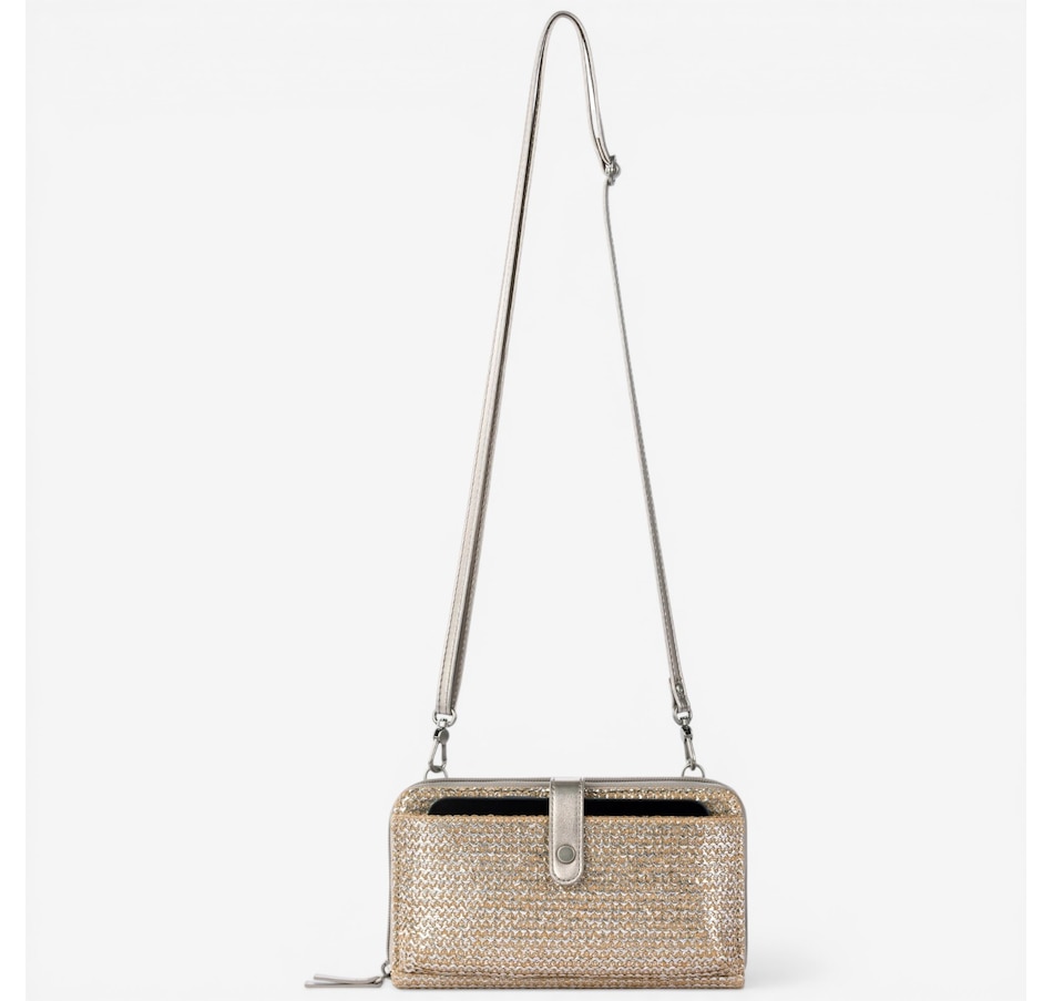 • Crossbody strap drop: 26"; wristlet drop: 5"