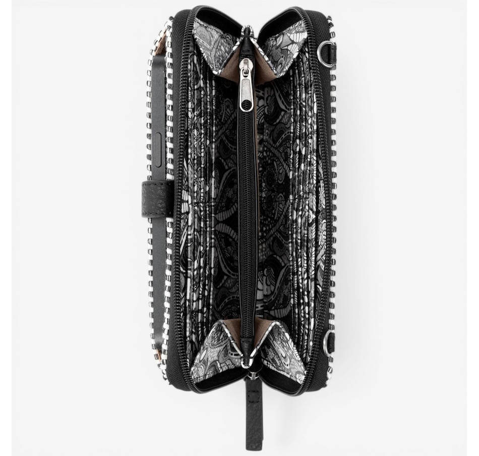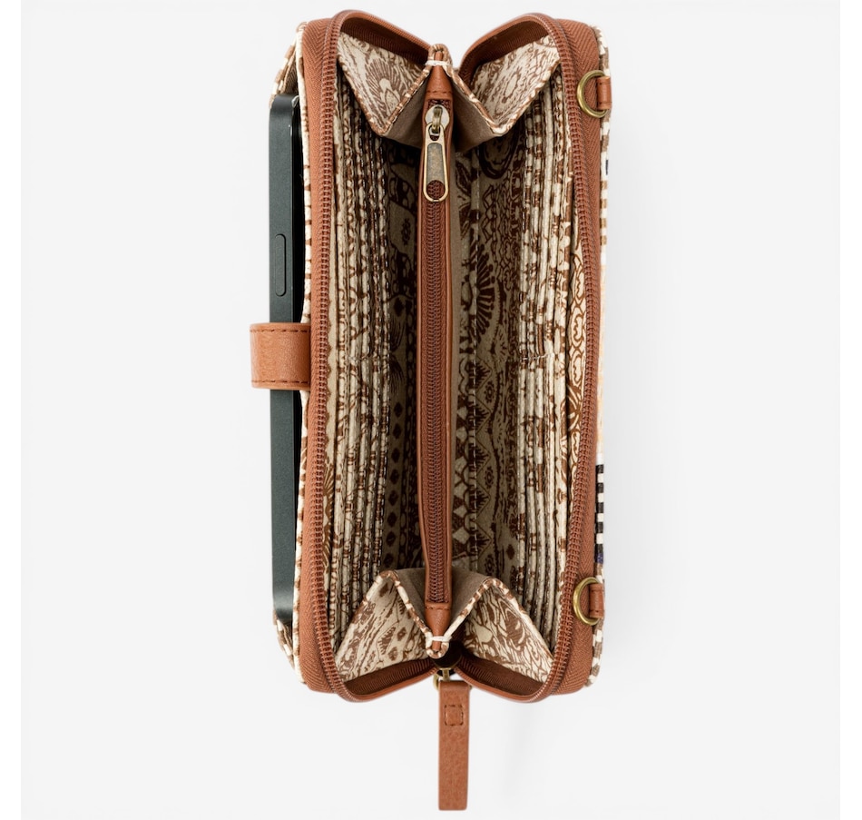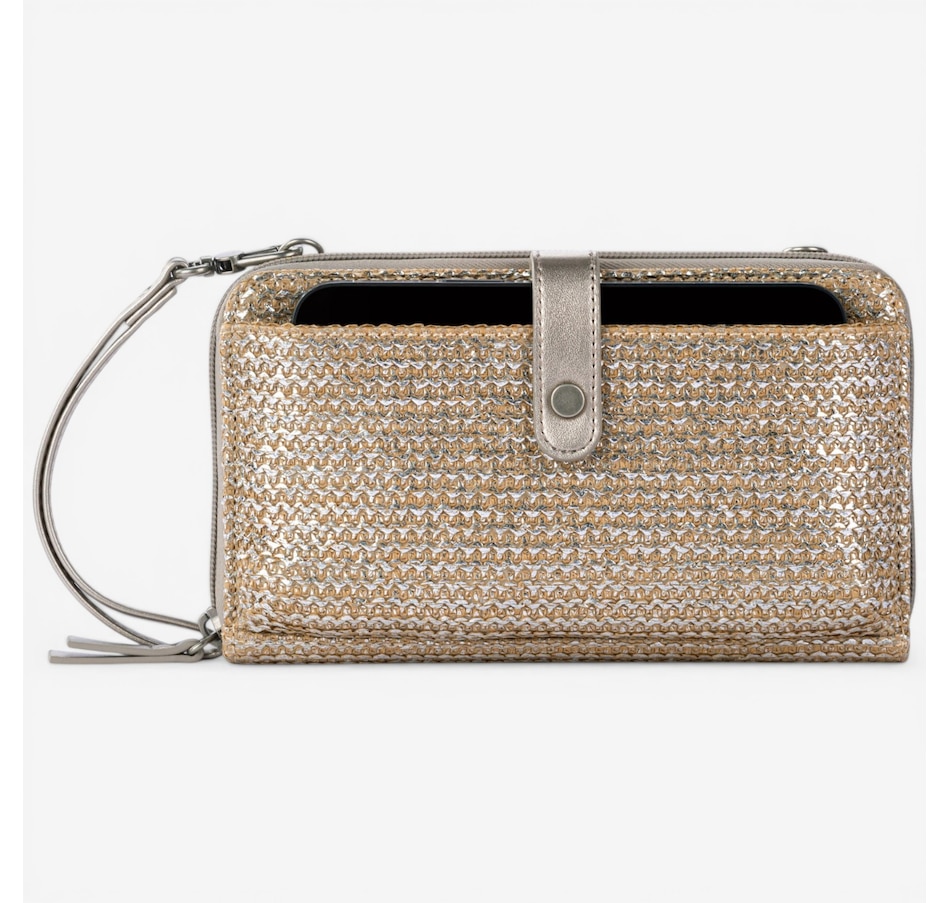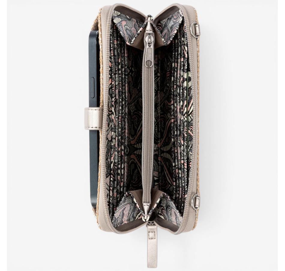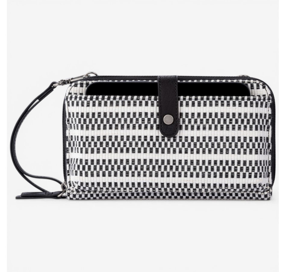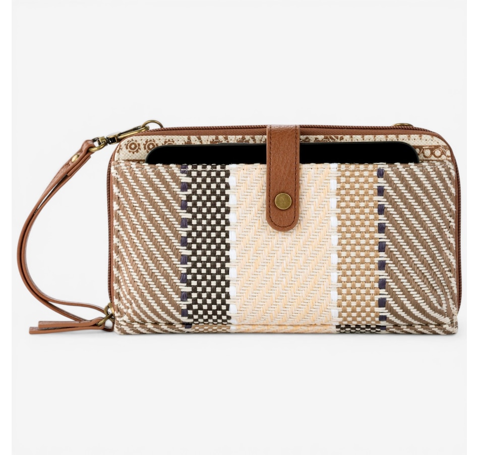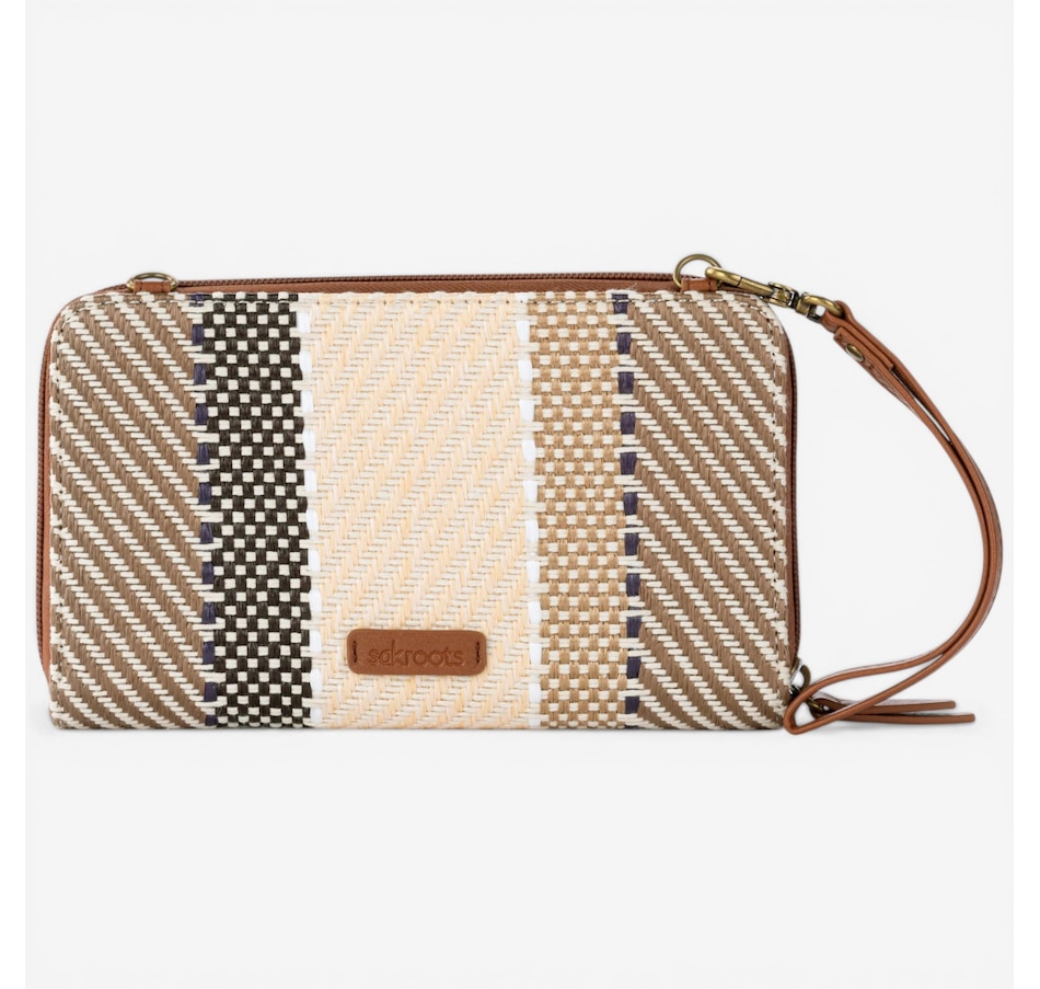 Style meets smart functionality in the Sakroots large smartphone wristlet, a vibrant essential designed to keep you organized on the go. Featuring eye‑catching straw and woven detailing, this signature piece adds texture and personality while securely holding your smartphone (up to an iPhone Xs Max) in a dedicated front snap‑closure pocket. Inside, thoughtful organization includes 16 card slots, two billfolds, and a zip pocket to keep essentials neatly in place. With a secure top‑zip closure and detachable straps, it easily converts from wallet to wristlet to crossbody, making it the idea companion for errands, travel, or nights out when you want style, convenience, and versatility.