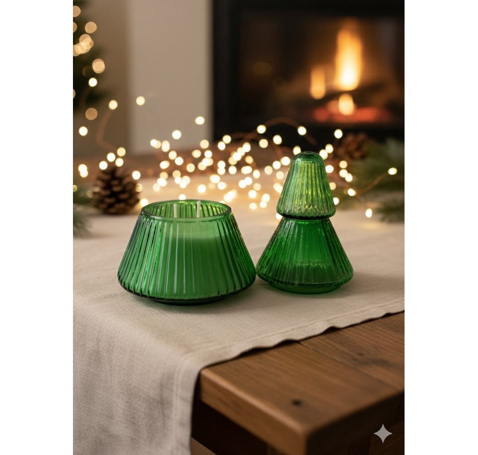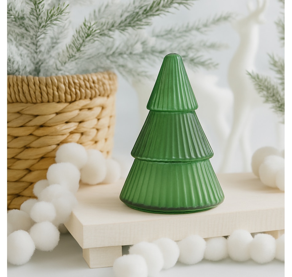 Deck your halls with this charming two-wick Green Glass Christmas Tree Candle! Featuring a festive O'Christmas Tree, the smell of a freshly decorated Spruce Christmas Tree is just for all to enjoy. This 14-oz soy wax beauty brings cozy winter vibes to any room. The elegant tree-shaped green glass vessel doubles as decor, making it the perfect seasonal statement piece.