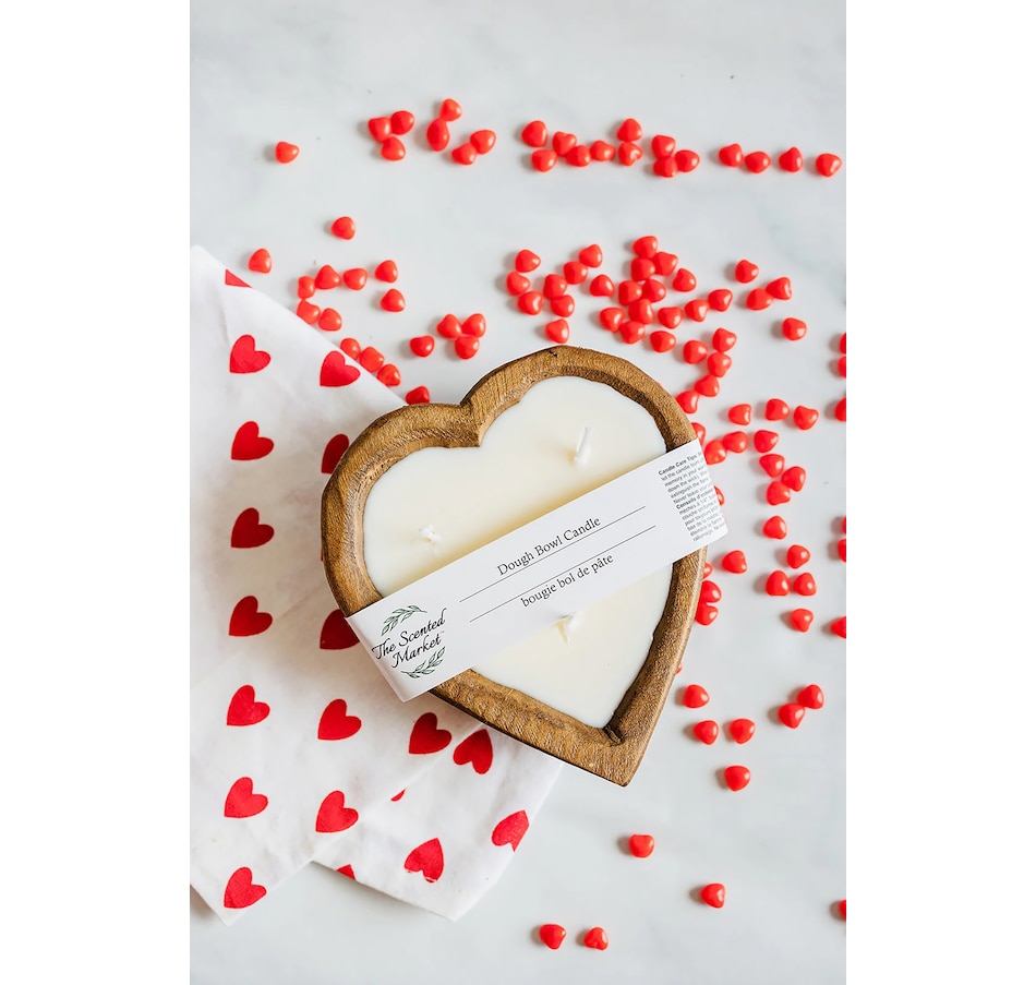 This heart-shaped, hand-carved wooden dough bowl brings a unique, rustic touch to your space. It feaures three evenly spaced wicks for optimal fragrance distribution and an even burn. It's a perfect candle for romantic ocassions, a thoughtful gift, or a cozy night in.